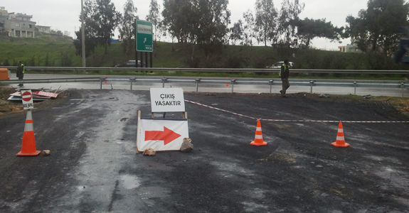 Belediyenin Karşıyaka Örnekköy'de Girne Caddesi'ne bağlantı için yaptığı yolu bariyerlerle kapatan, tel örgü çeken karayolları bu kez Gaziemir'de benzer bir çalışma yaptı. İzmir Büyükşehir Belediyesi tarafından yapımına başlanan temeli geçtiğimiz günlerde CHP Genel Başkanı Kemal Kılıçdaroğlu ve İzmir Valisi Cahit Kıraç'ın da katıldığı törenle atılan Yeni Fuar Alanı'nın otoban bağlantısı kapatıldı.