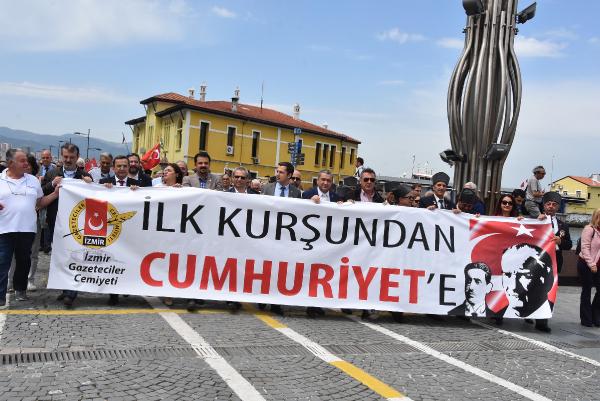 Konuşmaların ardından gazeteciler, siyasiler ve vatandaşlar Konak'tan Cumhuriyet Meydanı'na kadar yürüdü. Program, Cumhuriyet Meydanı'ndaki zeybek gösterisi ile son buldu. (DHA, AA)
