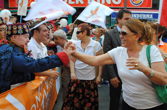AKSAKAL KAYACAN: Özen göstermek beni yorsa bile özen gösteriyorum. Çalkaya kötü bir insan değil, yaptığı güzel şeyler de var ama bu bir vizyon. Mesela ben bir kitapçık yaptım ve kitapçıkta diyorum ki 'Balçova'ya bir kadın eli değsin ister misiniz?' Bu inanılmaz ilgi çekiyor. Gençler çok güzel destek veriyor. Bir de ben konu mankeni kadın modeli değilim. Beni tanıyanlar etrafına bana güvenilmesi gerektiğini güzel anlatıyorlar. Ben burada ana başlıklarla gösteriyorum, diyorum ki İnciraltı'nda eski günlerde olduğu gibi denize girmek ister misiniz? Dönüyorum, gün batımında teleferikten İzmir'in eşsiz manzarasını seyretmek ister misiniz? Teleferik bizim iddiamız. Bunun nasıl olabileceğini açıklıyorum. Pazar, ayağınıza gelsin ister misiniz? Pazara genelde kadınlar gider. Pazarımız yanlış tercih yapılarak teleferiğe koyulmuş. Ve de sağlıklı bir bina değil. Oysa orası rampalarla oluştuğu için muazzam bir engelli rehabilitasyon merkezi olur. Biz engellilerle ortak yaşamda birleşmek zorundayız. Seçim dönemi bir engelliyi okşayıp oy avcılığı değil bu. Bunu projelendiren bir görme engelli arkadaşım. Hep ifade ediyorum, bu arkadaşımın okuduğu kitapları ben okumadım daha. İnanılmaz bir bilgi birikimi var. Ben onun beyninden yararlanmak istiyorum. Onu tecrit ederek yaşayamazsınız. Çok sevdiğim Down sendromlu çocuklarımız var. Onların seçilmiş olduğuna inanıyorum. 'Çocuğun olsaydı ister miydin' diye sorsanız, 'Down sendromlu bir çocuğu annesi olmayı isterdim' derim. Onları inanılmaz güzel buluyorum. Zaten benim Down sendromlu bir kızım var, adı Tuğçe. Onun bana iki önerisi oldu. Birisi Down cafe, birisi de engelli radyosu. 'Bizim radyomuz olsun biz çalıştıralım, belediye destek versin. Kendi kanalımız, hepimizin ortak kanalı olsun' dedi ve bunu koyduk projeye. İnanılmaz güzel bir proje.