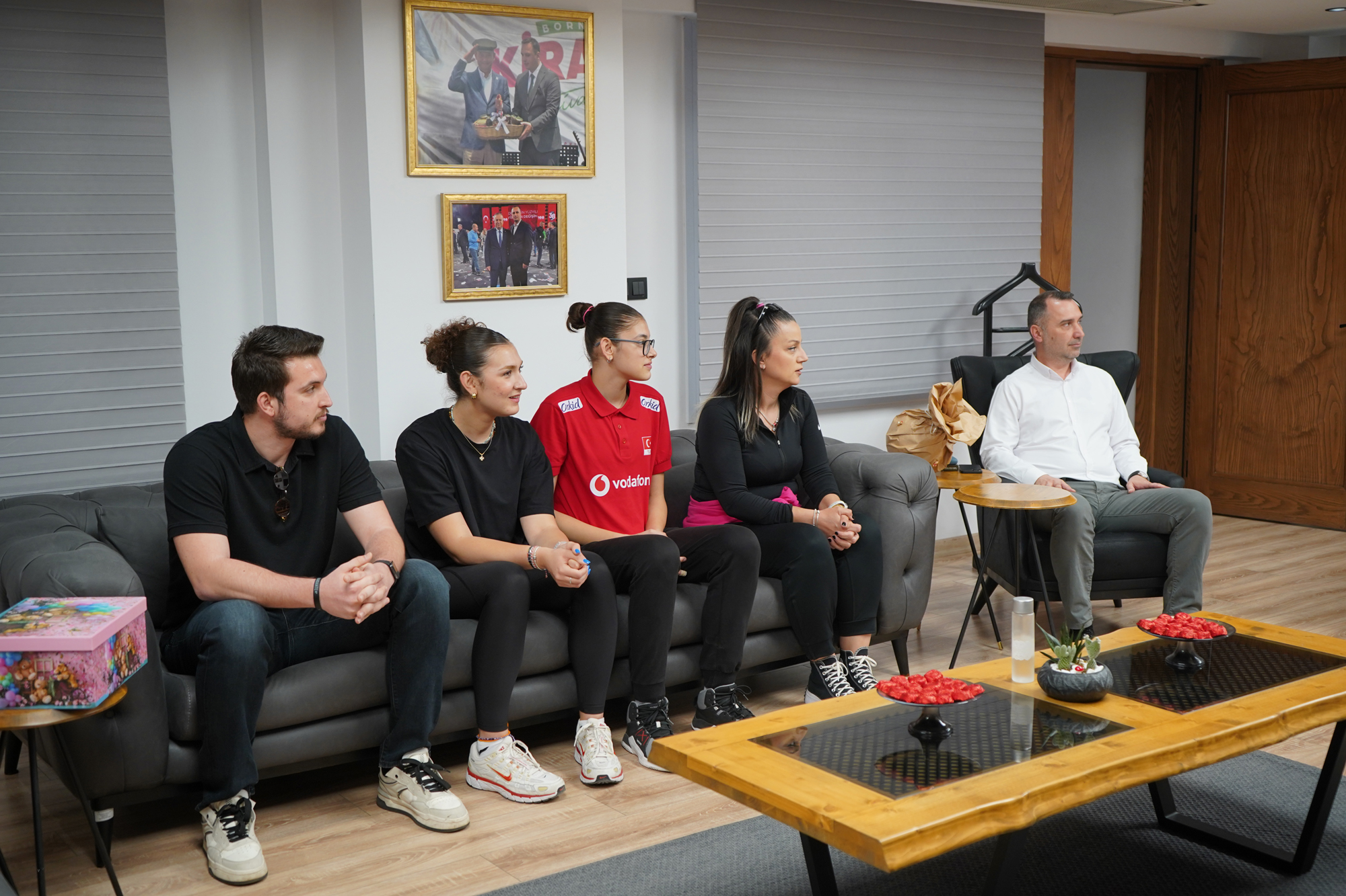 Ziyarette genç sporcuyu tebrik eden Başkan Eşki, “Seninle gurur duyuyoruz. Bornova’nın adını Milli Takım seviyesinde temsil etmen bizim için büyük mutluluk. Türk voleybolunda ekol olmuş pek çok kulüp seni transfer etmek istiyor ama biz her zaman senin yanındayız, destekçin olacağız. Yolun açık olsun, inşallah çok daha iyi yerlerde olursun.” diyerek Hasret’in ailesine ve antrenörlerine emekleri için teşekkür etti.