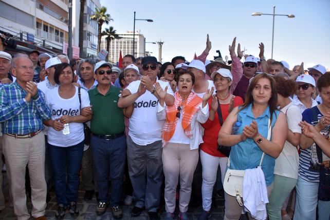 Genel Başkan Kılıçdaroğlu'nun İstanbul Milletvekili Enis Berberoğlu'nun tutuklanmasının ardından Ankara'dan İstanbul'a başlattığı yürüyüşe destek için Türkiye'de bir tek İzmir İl Örgütü ekstra program düzenledi.