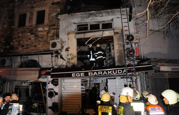 İZMİR - Alınan bilgiye göre, Kemeraltı Çarşısı 914 Sokak'ta bulunan Nejat Çoşkun'a ait ''Ege Barakuda'' adlı dalış malzemeleri satan iş yerinde, patlama meydana geldi. İş yerinin yanı sıra çevrede bulunan dükkanlarda hasara yol açan patlamanın ardından yangın çıktı.