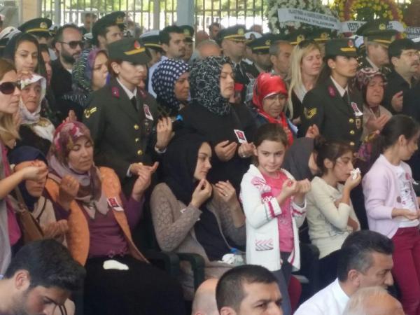 Namazın kılınması sırasında şehidin kızı Busem sık sık sarıldığı annesini teselli etmeye çalıştı, annesinin yakasındaki babasına ait fotoğrafı düzeltti. Bu anlarda şehit askerin yakınları da sık sık Busem Uçan'a, 'Dimdik ayakta dur' diye seslendi.