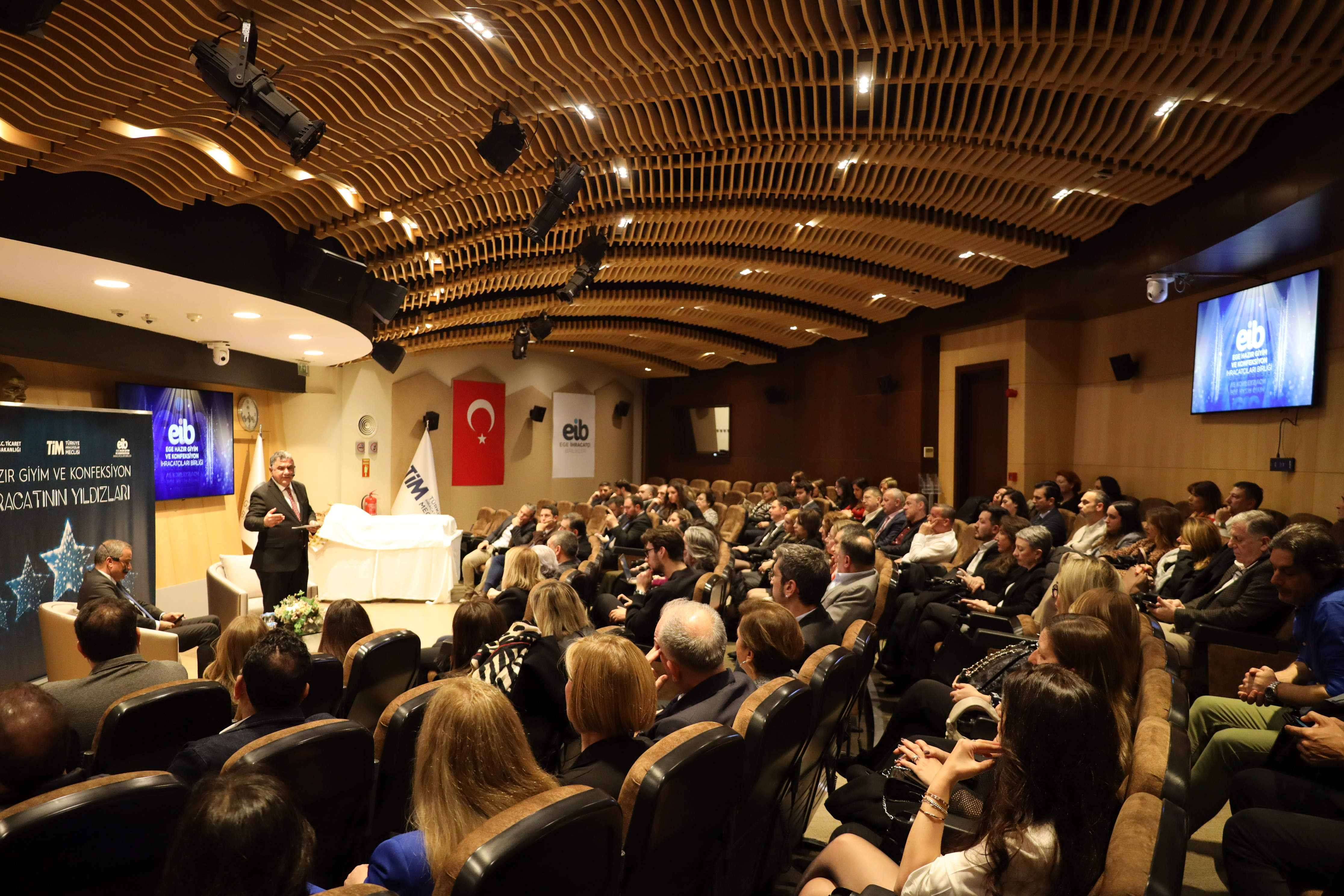 Ege Hazırgiyim ve Konfeksiyon İhracatçıları Birliği Yönetim Kurulu Başkanı Burak Sertbaş, 'Sektörümüz kadınların iş gücüne katılım oranı açısından Türkiye ortalamasının oldukça üzerinde. Hazırgiyim ve tekstil sektörünü birlikte ele aldığımızda kadın çalışan oranı %50-55 seviyelerinde. Bu yapımızın diğer sektörlerimize de örnek olmasını diliyorum. Kadınların başta sektörümüz olmak üzere ülkemiz kalkınmasına, nitelikli, katma değeri yüksek işler üretilmesine büyük payları vardır. Ulu önderimiz Atatürk'ün işaret ettiği üzere ülkemizi muasır medeniyet seviyesinin üzerine çıkarmak, uygar bir toplum olmak ancak kadınların toplumda ve iş hayatında erkeklerle eşit olması, birlikte çalışmasıyla sağlanır.' dedi.