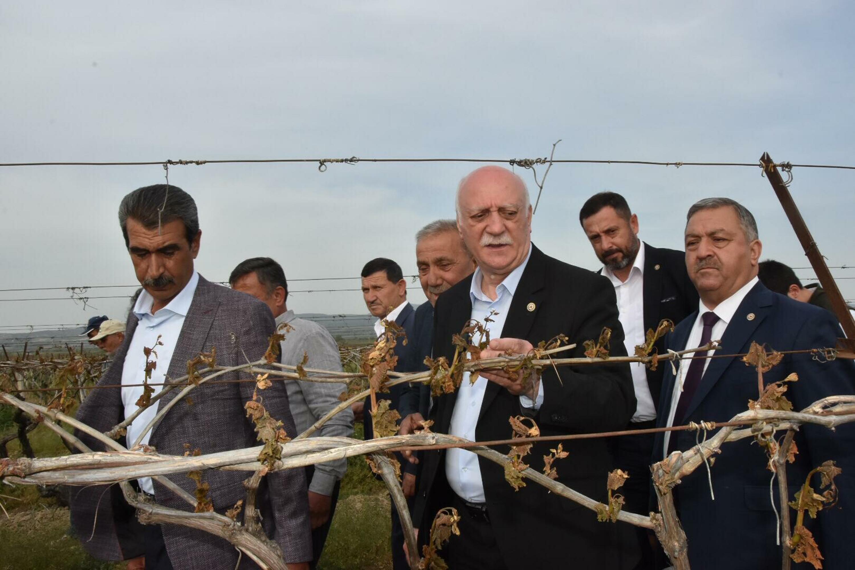 Türkiye Ziraat Odaları Birliği (TZOB) Genel Başkanı Şemsi Bayraktar, İzmir’in ardından zirai donun etkili olduğu Manisa’da bağlarda inceleme bulundu. Şehzadeler İlçe Ziraat Odası’na ziyarette bulunan Bayraktar, daha sonra Şehzadeler ilçesindeki Yeşilköy Mahallesi’nde üzüm bağlarını inceledi. Bayraktar’a, Manisa Ziraat Odaları Koordinasyon Kurulu Başkanı Hüseyin Altındağ ve ilçe ziraat odaları başkanları eşlik etti. İncelemenin ardından basın açıklaması yapan Bayraktar, “Bu kadar büyük bir emek veriliyor ve bu kadar emek bir gecede yok oldu. İşte tarım böyle bir şey. Çiftçimize sahip çıkmamız lazım. Çiftçilerimizin arkasında olmamız lazım. Sulama ücretleri çok yüksek. Özellikle iklim değişikliğinin olduğu bu dönemlerde çiftçimiz zaman zaman çok fazla su kullanıyor. Çok fazla para ödüyor. Çok fazla elektrik parası ödüyor. Bunların altından kalkamıyorlar” diye konuştu.