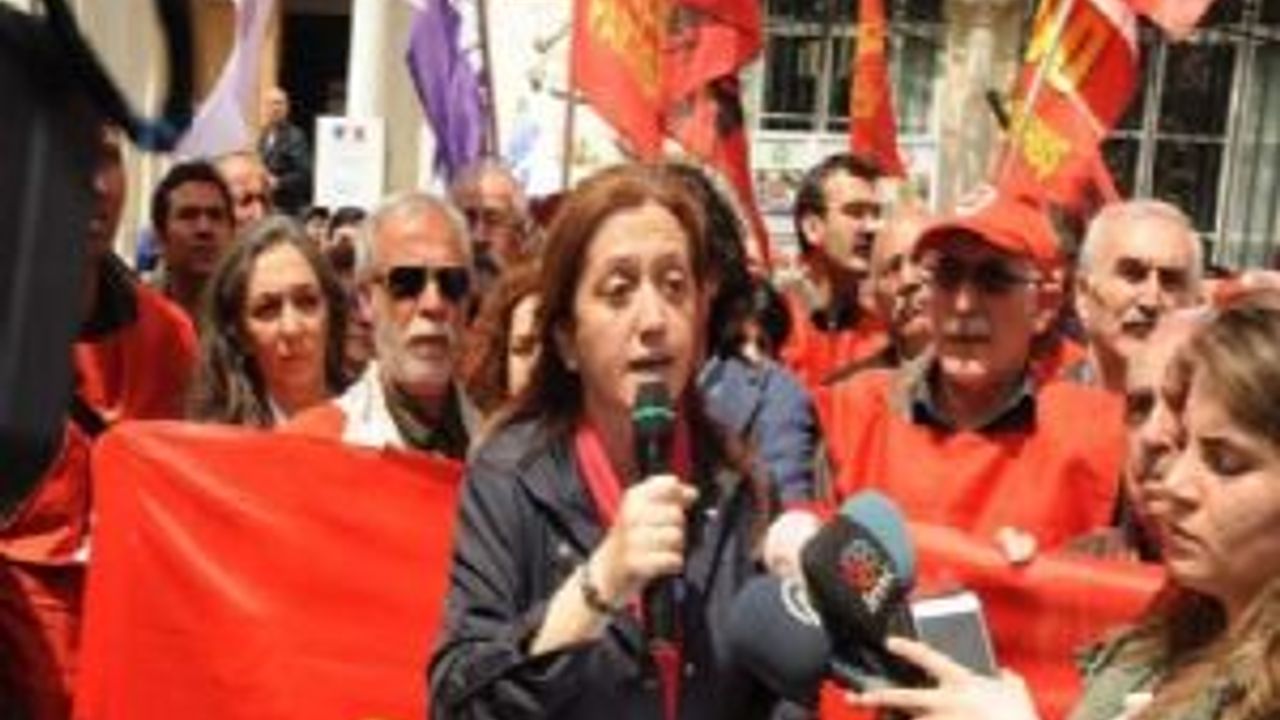Arzu Çerkezoğlu, 'Bugün burada bir kez daha ilan ediyoruz. Taksim'deki bu bariyerler , bu TOMA' lar yasa dışıdır. Buradan tüm İstanbul halkına bir suç duyurusunda bulunmak istiyoruz. 1 Mayıs günü yolların kesilmesi, toplu ulaşım araçlarının iptali tüm kentin gaza boğulması gibi nedenlerle yaşanacak olası mağduriyetlerin sorumlusu mahkeme kararlarını hiçe sayan, her sene aynı suçu işlemekte ısrar edenlerdir. Bu suça karşı çıkalım. Nice mücadeleler sonucu resmi tatil ilan edilen bir günü, silahlı adamların gölgesinde ev hapsinde geçirmeyi kabul etmeyelim. Evlerimizden sokağa çıkalım. Mutlaka ama mutlaka Taksim'e doğru yola çıkalım. Engellendiğimiz her yerde tepkimizi gösterelim. 1 Mayıs günü, ellerimizde çiçekler, dilimizde türküler, işçilerle, emekçilerle, arkadaşlarımızla, dostlarımızla buluşmaya çıkalım. Bu ülkede işçi sınıfı ve emekçilerin 1 Mayıs'ı kentlerin en merkezi meydanlarında tarihsel ve politik anlamıyla da İstanbul'da Taksim'de kutlama talebine karşı çıkmak, insanlara nefes almayı su içmeyi yasaklamak kadar, kimliğini, tarihini, benliğini, sınıfını inkar etmeyi istemek kadar akıl dışıdır. İşte o nedenle biz 1 Mayıs'ta Taksim'de olacağız. 1 Mayıs'ta Taksim'e çağrı yapıyoruz' dedi.