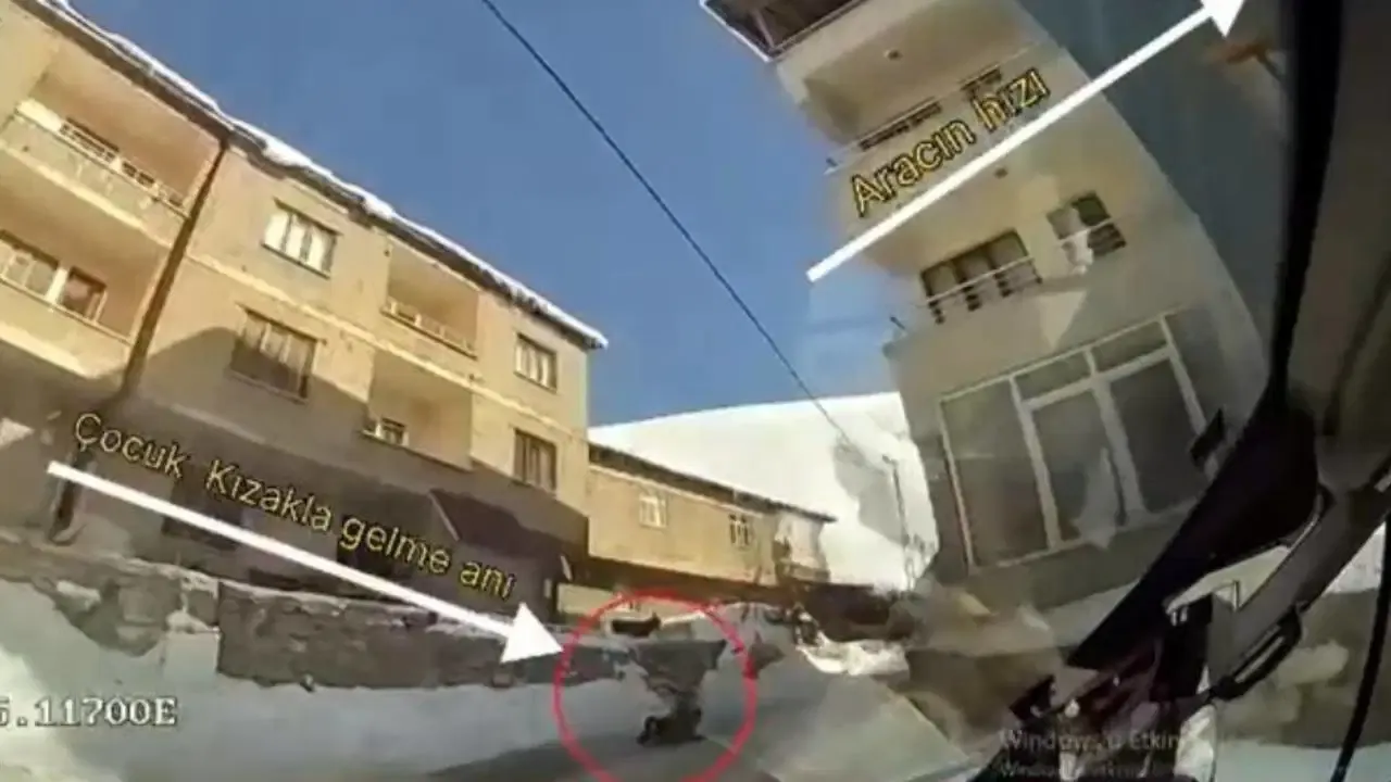 Bu arada kaza, otobüsün araç içi kamerasına yansıdı. Görüntülerde çocuğun kızakla yolda kaydığı sırada otobüsün çarptığı anlar yer aldı.