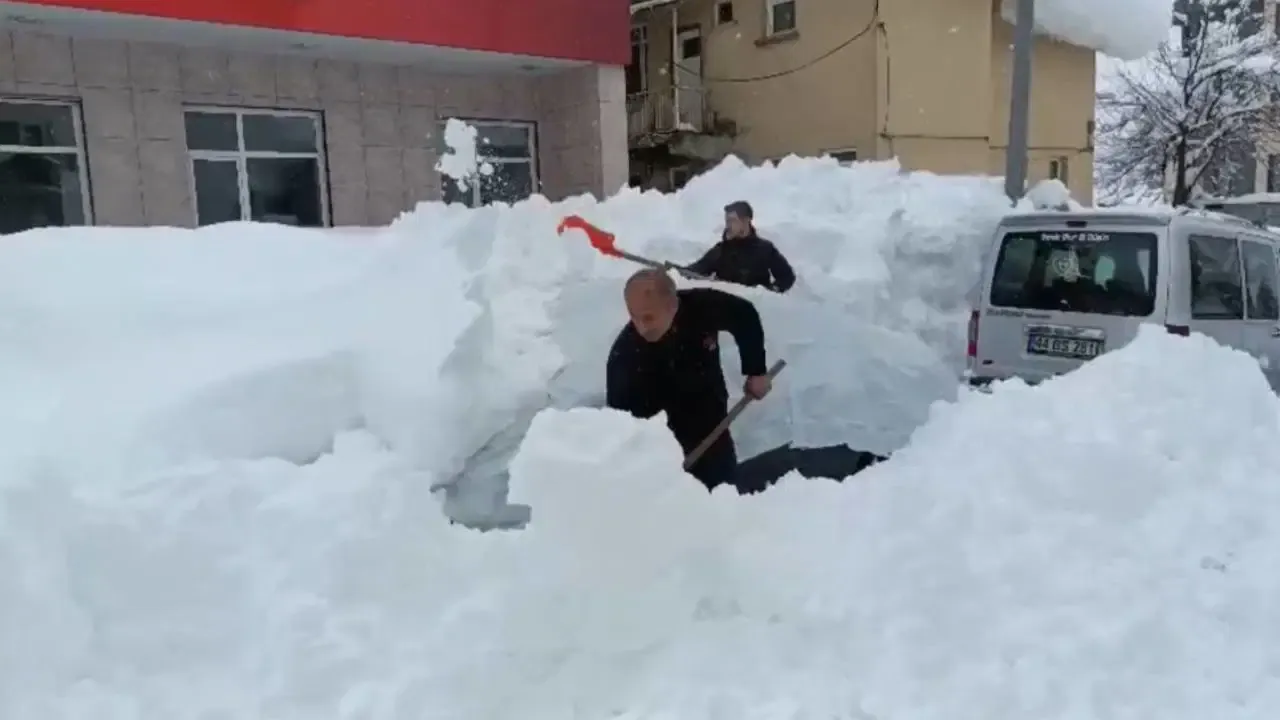 Yağışın aralıklarla devam ettiği ilçede belediye ve ilgili ekiplerin yol açma çalışmalarını sürdürdüğü belirtildi. İlçede yaşayan Sinan Genç, "Uzun zamandır kar yağmıyor' deniliyordu. Bu sene 1,5 metre kar yağdı. Evler, sokaklar ve arabalar kara gömüldü. Saatlerdir iş yerinin yolunu açmaya çalışıyorum" dedi.