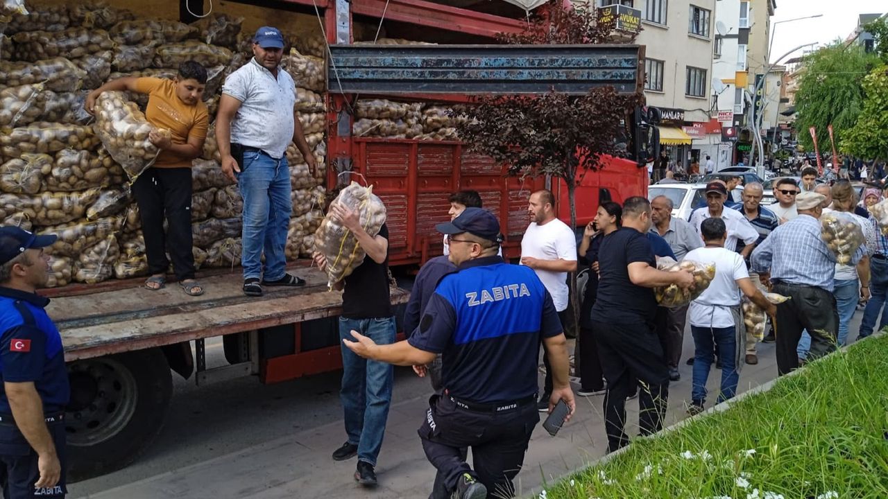 Sandıklı'da isminin açıklamasını istemeyen bir üretici Belediye Meydanı'nda 20 ton patatesi ücretsiz halka dağıttı. Patates fiyatlarının düşük olduğunu ve alıcı bulamadığını gerekçe gösteren üretici patatesleri çuvallatıp kamyona yükledi. Daha sonra kamyon ile meydana getiren üretici isteyen herkese bir çuval patates verdi. Patates almak için gelen vatandaşlar uzun kuyruk oluşurken, dağıtım yaklaşık 2 saat sürdü. (DHA)