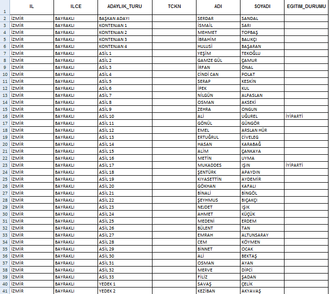Belediye Başkan Adayı Özcan Durmaz listesinde kontenjan 10, 13 ve kontenjan 1'inci sıraları İYİ Parti'ye bıraktı. Aliağa Belediye Meclis Aday Listesi: