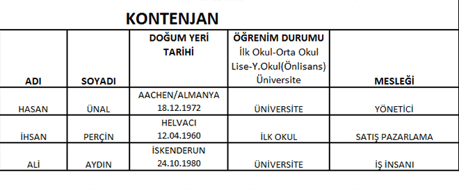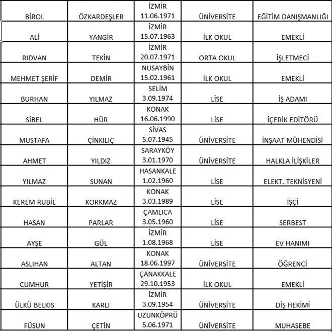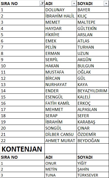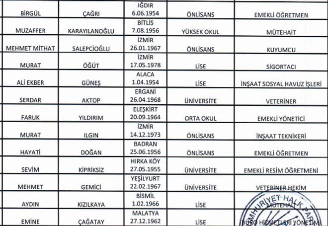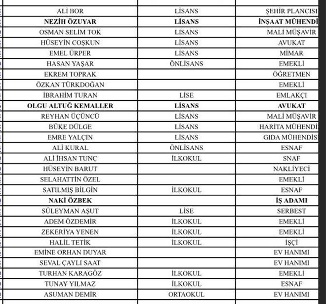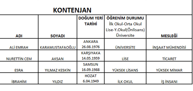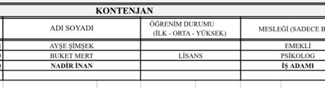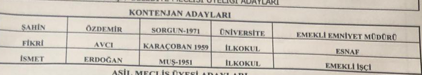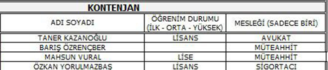 Kontenjanlar: İbrahim Özkara, Ali Ekber Sarıgül, Lütfü Özcan