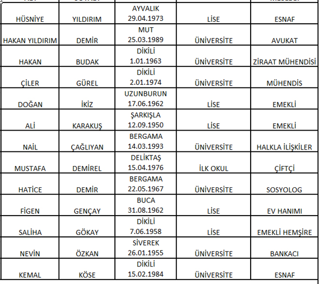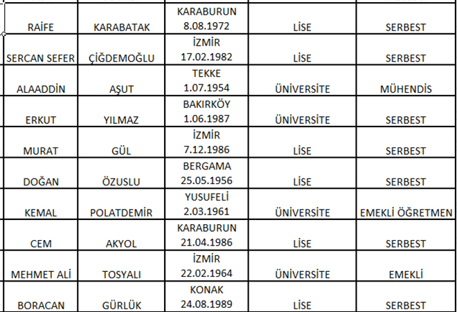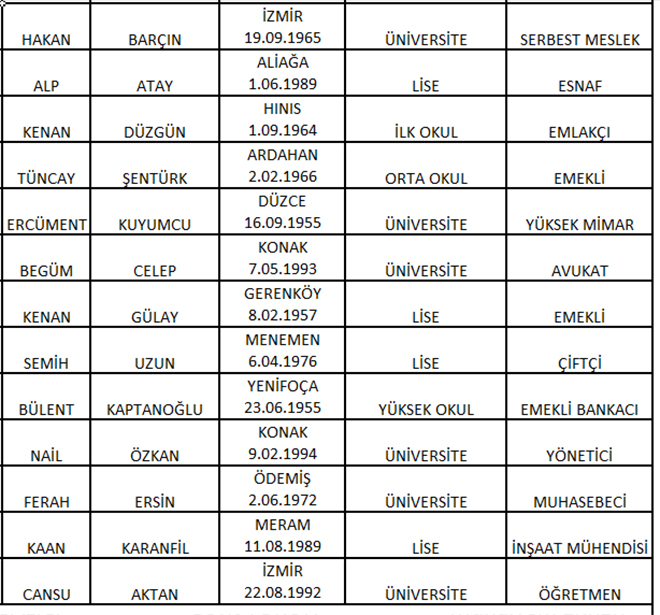 Özay Kaptan, Mustafa Gerçek, Nazan Dönmez, Hamdi Halis, Süleyman Gökhan Kara, Metin Uçar, Tahir Balban, Sema Bilgi, Feridun Azeroğlu, Kenan Çayan, Mehmet Okumuş, Burhan Sedat Turman, Murat Ürün, Mustafa Turan, Sezer Türkmenoğlu, Ediz Demir, Mehmet Sovancı, Mualla Akgün, Selahattin Bağlı, Aydın Ergin, Didem Zeyrek, Hüseyin Öncel, Arif Taş, Sevil Değerli Binici, Emine Barut, Murat Karavuş, Ömer Gere, Selçuk Uysal