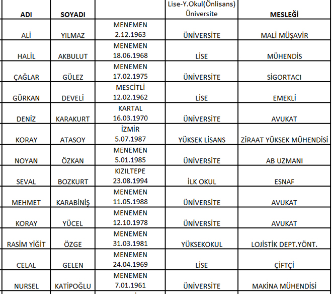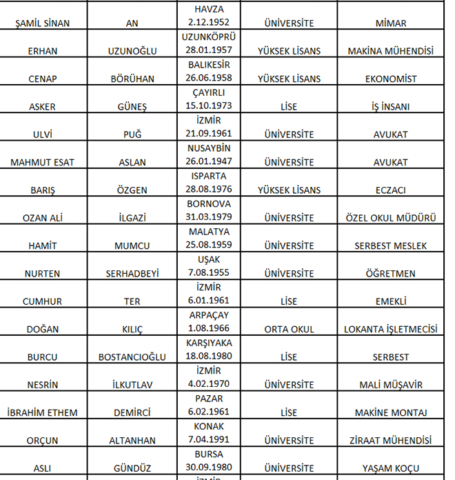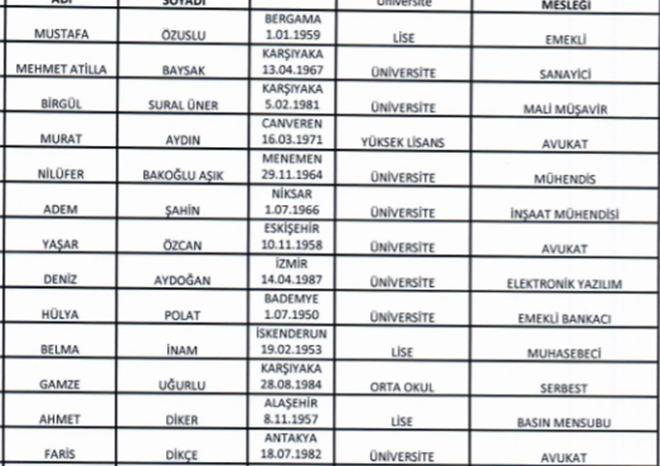 Kontenjan adaylar; Seda Öztüre, Semiha Arat ve Emel Çaylı olarak yer aldı. Listeye ise sırasıyla şu isimler yazıldı: İsmet Orhan, Bülent Köklü, Ertan Certel, Yuta Deniz Ulçay, Muhittin Bayar, Alp Bölükbaşı, Mustafa Kıpkıp, Ali Yanar, Şebnem İştar Özdemir, Meltem Bodrumlu, Yiğit Öz, Kemal Ocak, Alpay Sağlıkcıoğlu, Abdulselami Güneş, Selçuk Balkan, Fatih Sarı, Ayşe Açılan, Ayhan Çevik, Metin Koşan, Emine Kıdal, Kalender Köse ve Mert Anıl Akgül.