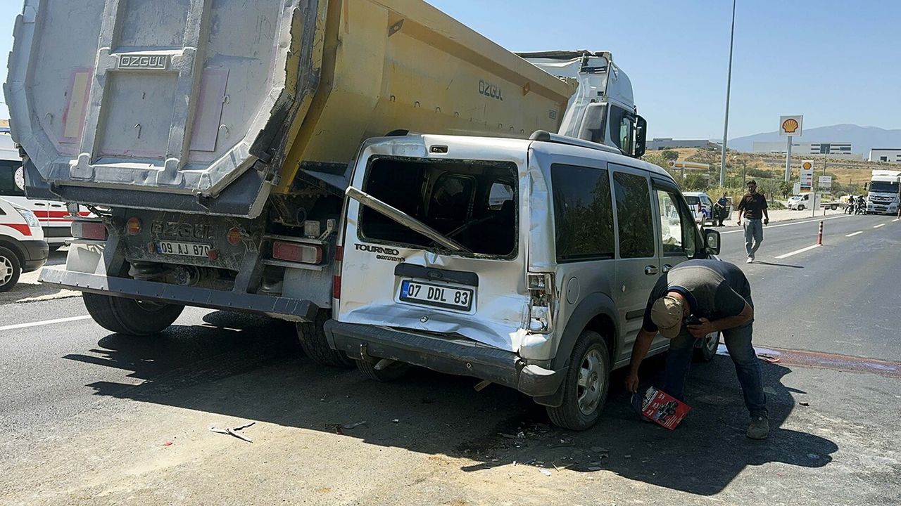 Kaza, saat 13.00 sıralarında, Turgutlu-Manisa yolu Bağyurdu Organize Sanayi Bölgesi Kavşağı yakınında meydana geldi. Manisa yönüne giden 45 APH 428 plakalı kamyon, önündeki Mehmet Aktaş (45) yönetimindeki 07 DDL 83 plakalı hafif ticari araca çarptı. Hafif ticari araç da önündeki 59 AEN 797 plakalı TIR'a arkadan çarptı. Hafif ticari aracın sürücüsü Mehmet Aktaş ile yanındaki Besime Aktaş (44), Sümeyye Aktaş (16), Semanur Aktaş (15), Zeynep Aktaş (12) ve Bedirhan Aktaş (8) yaralandı.