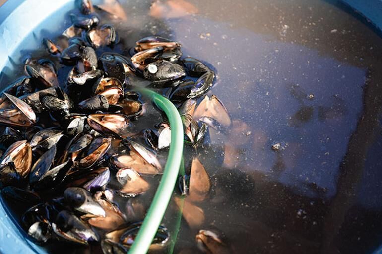 Bir gün sonranın midyeleri akşam 18:00 gibi evlere teslim ediliyor. İlk iş midyelerin temizlenmesi. Temizlik işi bitince midyeler dolaplara yerleştiriliyor.