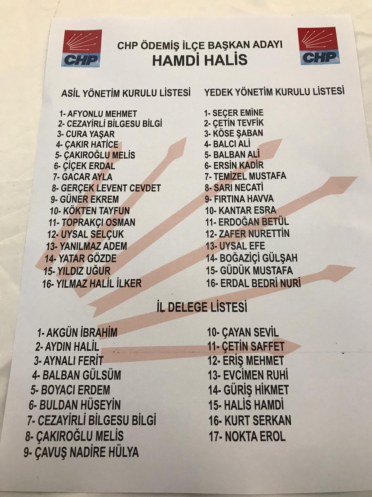 Ödemiş'te mevcut İlçe Başkanı Hamdi Halis devam etme kararı aldı. Kongrede karşısına kimse çıkmadı. Tek adaylı bir kongre yaşandı. İşte Halis'in listesi: