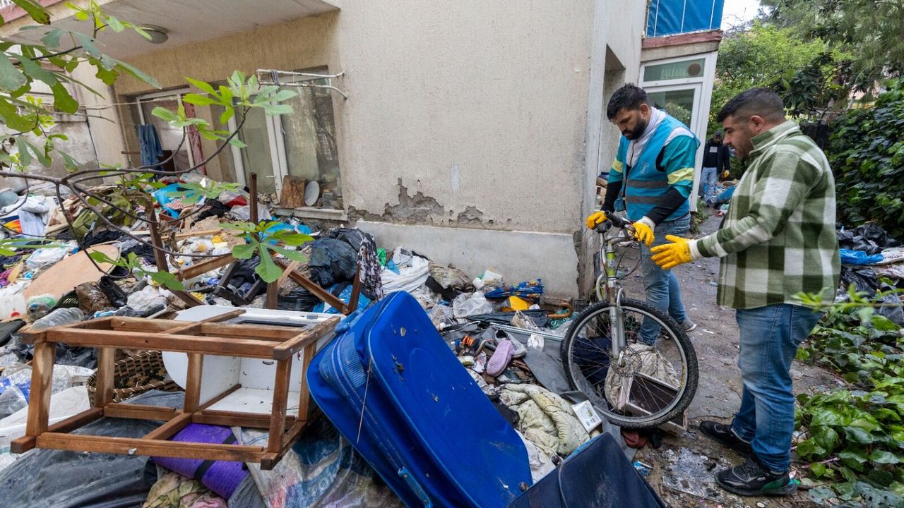 Daha yaşanabilir bir kent ve sağlıklı bir toplum hedefiyle çalışmalarını sürdüren Karşıyaka Belediyesi, çevre ve görüntü kirliliği yaratan çöp evlere yönelik kapsamlı temizlik ve denetim faaliyetleri gerçekleştiriyor. Vatandaşlardan gelen ihbarları da titizlikle değerlendiren ekipler, bu kapsamda Bostanlı Mahallesi’ndeki bir apartmanın bahçesine müdahale etti. Belediye İklim Değişikliği ve Sıfır Atık, Zabıta, Temizlik ve Sağlık İşleri müdürlüklerinin ortaklaşa yürüttüğü çalışmada, bahçeden yaklaşık 3 ton atık çıkarıldı. Ardından, ilaçlama çalışması da tamamlanarak bahçenin temizliği sağlandı.