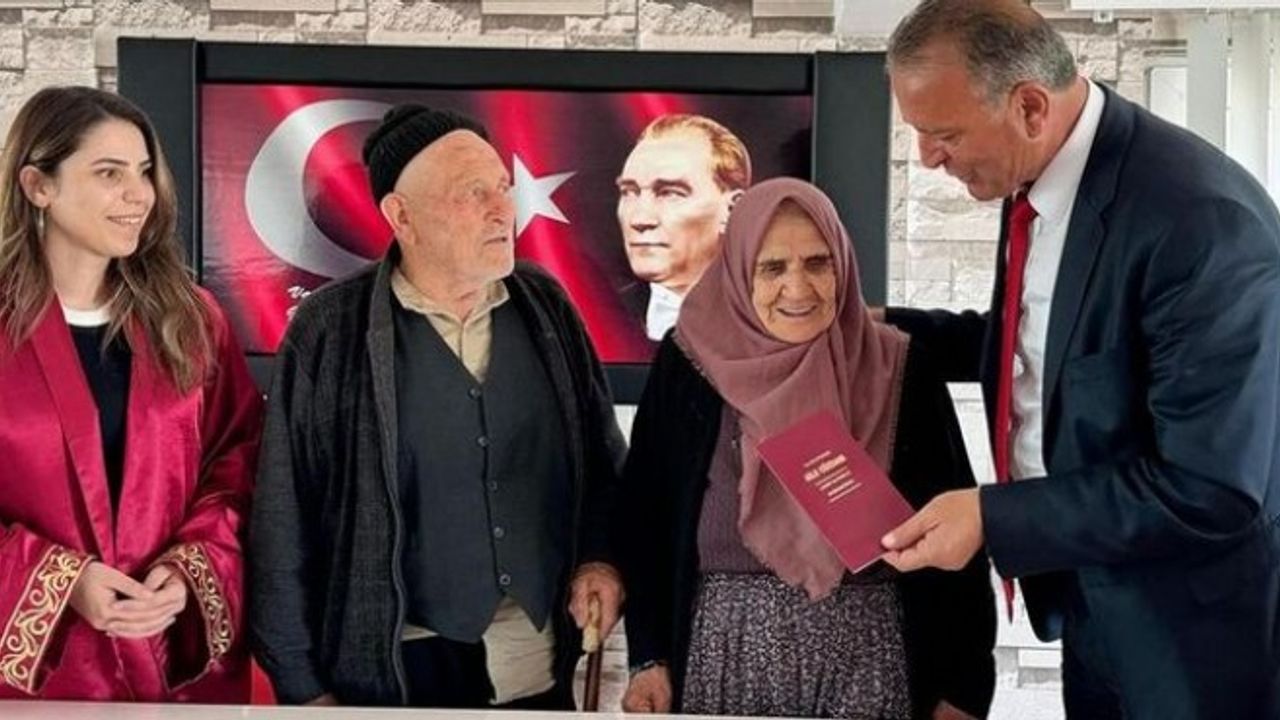 Niğde'de 8 çocuk ve 20 torun sahibi Elmas Sağlam ile Ahmet Erol çifti, 60 yıl sonra resmi nikah kıydırdı.