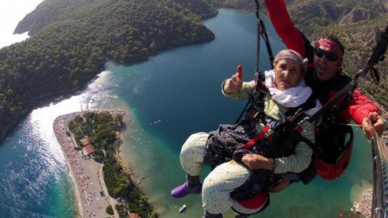Anneannesinin günlük kıyafetleriyle uçtuğunu aktaran Tutgun, 'Dedem yıllar önce vefat etti. Biz de uçuş sırasında Denizli'deki akrabalarımıza bol bol selam gönderdik. Bir süre paraşütün kontrolünü anneanneme verdim. Gökyüzünde onunla güzel bir sohbet şansı yakalamış oldum' diye konuştu.
