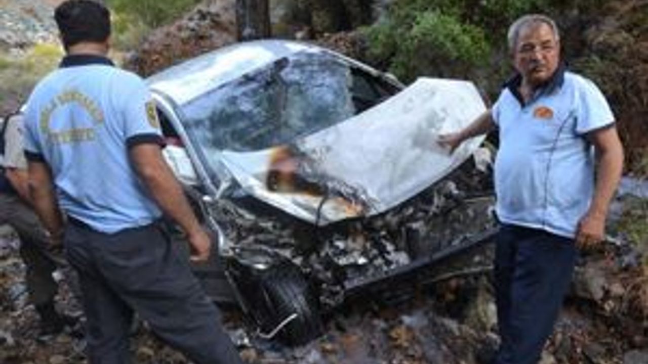 Kaza, saat 18.30 sıralarında Gökçek Mahallesi'nde meydana geldi. Bir bankada çalışan 9 aylık hamile olan Aycan Ünal Tellioğlu, kullandığı 48 JD 606 otomobilin direksiyon hakimiyetini kaybetti. Savrulan otomobil 50 metrelik uçuruma yuvarlandı. Kazada sürücü Tellioğlu yaralanırken, uçuruma yuvarlanan otomobil yanmaya başladı. Kazayı görenler durumu sağlık, itfaiye ve jandarma ekiplerine bildirdi. İhbar üzerine gelen itfaiye ekipleri, Tellioğlu'nu araçtan çıkartarak, yanan otomobili söndürdü. Sağlık ekiplerinin yaptığı müdahalenin ardından 9 aylık hamile olan Tellioğlu, ambulansla Fethiye Devlet Hastanesi'ne kaldırıldı. Burada tedaviye alınan Tellioğlu ve karnındaki bebeğinin sağlık durumunun iyi olduğu belirtildi. Kazayla ilgili soruşturma başlatıldı.(dha)