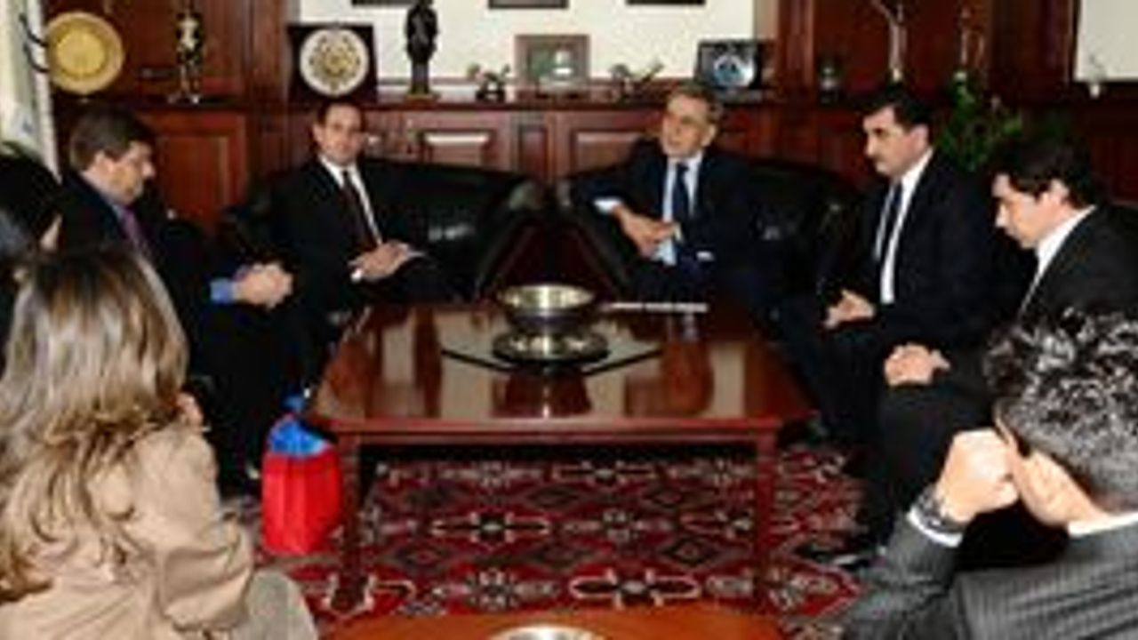 İZMİR - Amerika Birleşik Devletleri'nde faaliyet gösteren, ülkenin önde gelen inşaat firmalarından olan Magellan Gayrimenkul Geliştirme Yatırım Grubu, İzmir Büyükşehir Belediye Başkanı Aziz Kocaoğlu'nu makamında ziyaret etti. Kentteki yatırım olanaklarını değerlendirmek için İzmir'e gelen firma yetkilileri David Jay Carlins, Rebecca Carlins ve Brain David Gordon'a Kavuklar Grubu Yönetim Kurulu Başkanı ve Bornova Belediyesi Meclis Üyesi Abdullah Kavuk ile Çağrı Kanver Kavuk eşlik etti.
