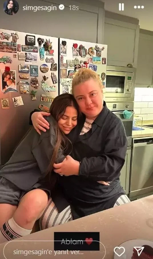 Ablasının vefatının ardından zor günler geçiren Simge Sağın sosyal medya hesabından avı dolu paylaşım yaptı. Ablasına sarıldığı bir kareyi yayınlayan Simge Sağın, "Ablam" yazarak kırmızı kalp emojisi koydu.