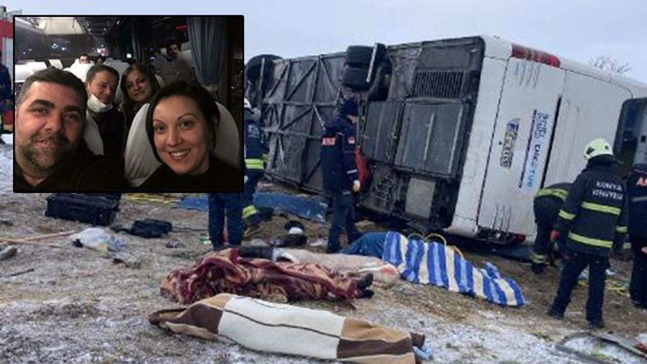 İzmir'den Kapadokya'ya gitmek üzere bindikleri otobüsün içinde özçekim yapan Yasemin ve Eyüp Erman Özkan çiftinin mutluluklarından geriye Konya'daki acı kazanın ardından son fotoğrafları kaldı.