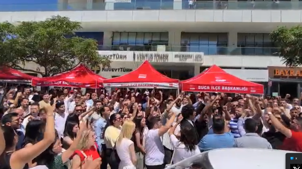 Öte yandan CHP İzmir İl Başkanlığı'nın çağrısıyla adliye önünde toplanan vatandaşlar operasyona tepki gösterdi. Eylemde "Kurtuluş Yok Tek Başına Ya Hep Beraber Ya Hiç Birimiz", "Hak Hukuk Adalet" ve "Dik Dur Eğilme Örgüt Seninle" sloganları atıyor.