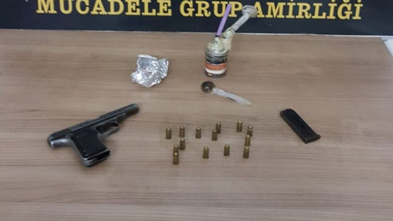 Dinar İlçe Emniyet Müdürlüğü ekipleri, uygulama noktasında şüphe üzerine durdurduğu bir araçta, bir miktar metamfetamin, uyuşturucu kullanma aparatı, tabanca ve 14 mermi ele geçirdi. Ekipler, araçtaki A.T. ile M.E'ye adli işlem uyguladı. (AA)