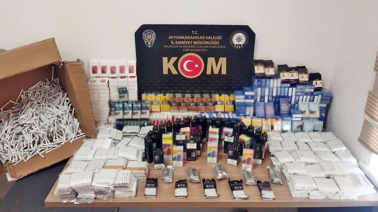 Afyonkarahisar İl Emniyet Müdürlüğü görevlilerince kaçakçılık faaliyetlerinin önlenmesi ve tespitine yönelik yapılan çalışmalar kapsamında Işıklar beldesinde 2 iş yerinde arama kapsamında 1920 doldurulmuş makaron, 11200 sahte bandrollü boş makaron, 20 kilo nargile kömürü ele geçirildi. Olayla ilgili 2 şüpheli hakkında 'Kaçakcılıkla mücadele kanununa muhalefet' suçundan adli işlem başlatıldı. (DHA)