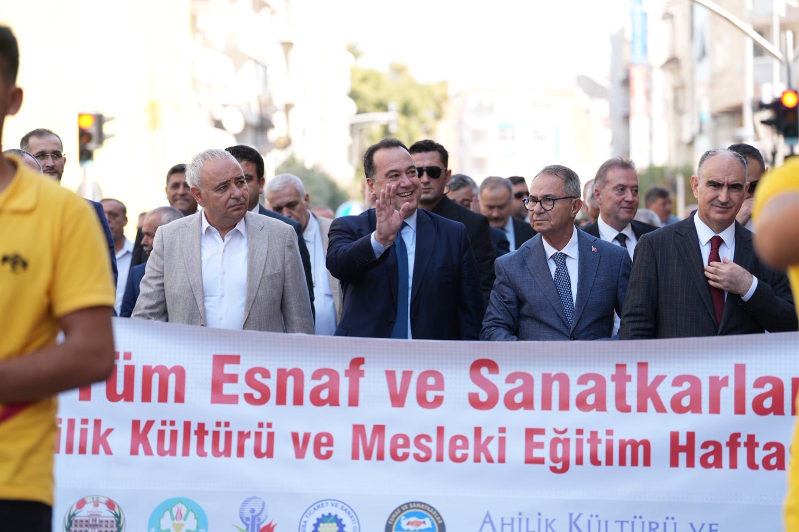 Manisa Valisi Vahdettin Özkan, yaptığı konuşmasında geçmişten günümüze Ahilik Kültürü hakkında bilgi verdi, Ahilik Haftası’nı kutladı. Vali Özkan, “Kadimden beri en geleneksel en sürdürülebilir, en vazgeçilemez bir mesleği icra ediyorsunuz. Toplumumuzun adeta iskeletini oluşturuyorsunuz ve toplumumuzun ortalamalarını taşıyorsunuz. Toplumumuzun, Türk milletinin, şehrimizin hissiyatının tercümanlarısınız sizler. Dolayısıyla tarihten sudur edip gelen bu hissiyatın mümessili olmak, temsilcisi olmak, taşıyıcısı olmak ayrı bir kıymettir, ayrı bir değerdir. Bu aynı zamanda milli değerlerimizi, manevi değerlerimizi, kültürel değerlerimizi en berrak bir şekilde, en saf bir şekilde taşıyıp gelecek nesillere aktaran bir mecradır. Bu ahilik kültürü” diye konuştu.