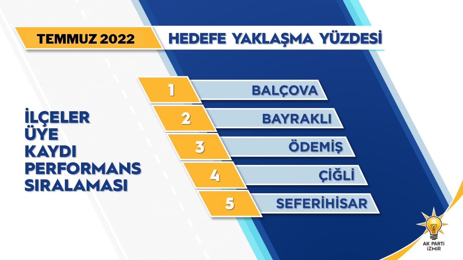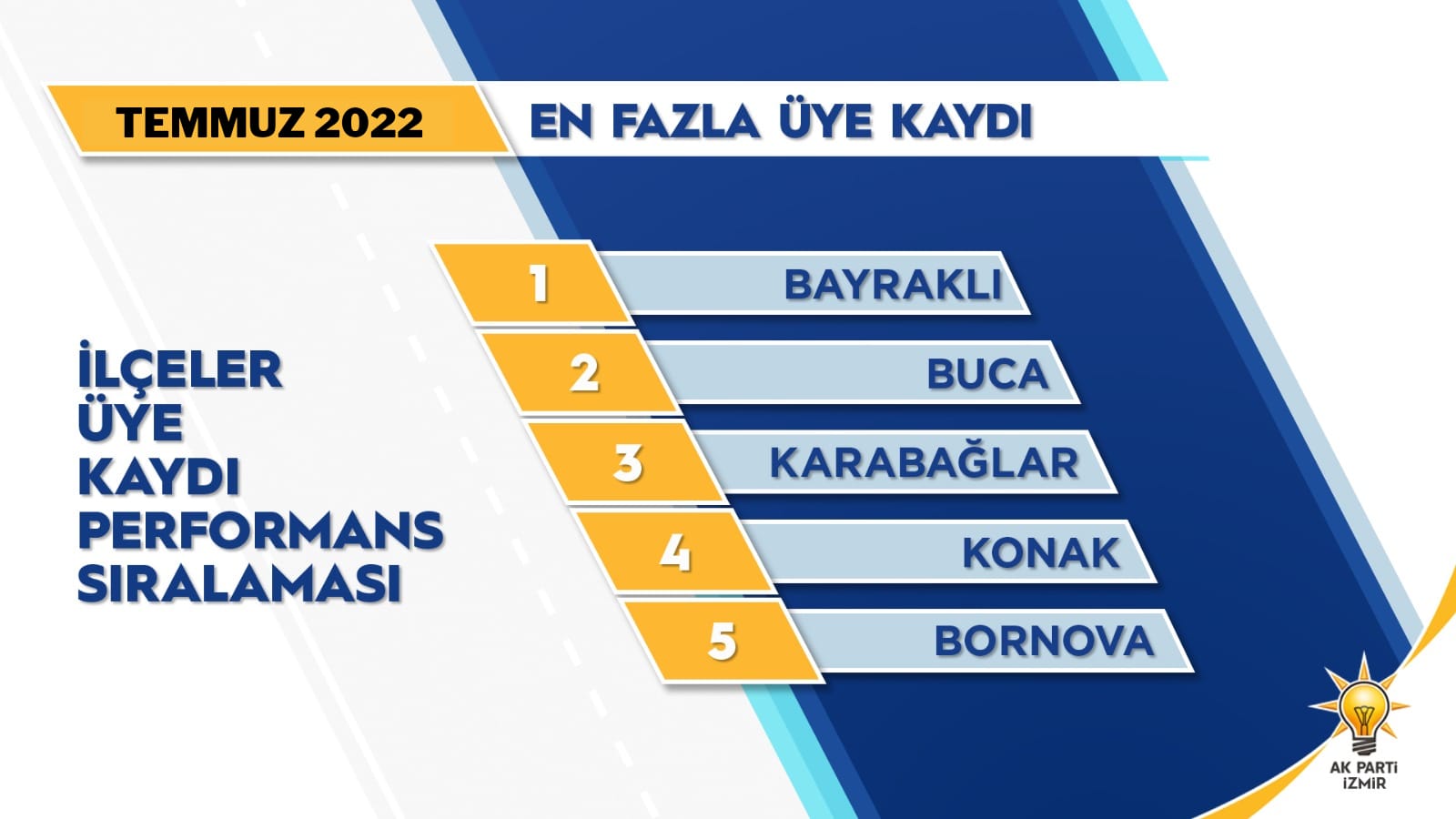 Temmuz ayında parti çalışmaları ile ilgili bilgilendirme yapan teşkilat, en fazla üye yapan ve hedefe en fazla yaklaşan ilk 5 ilçenin sıralamasını yaptı.