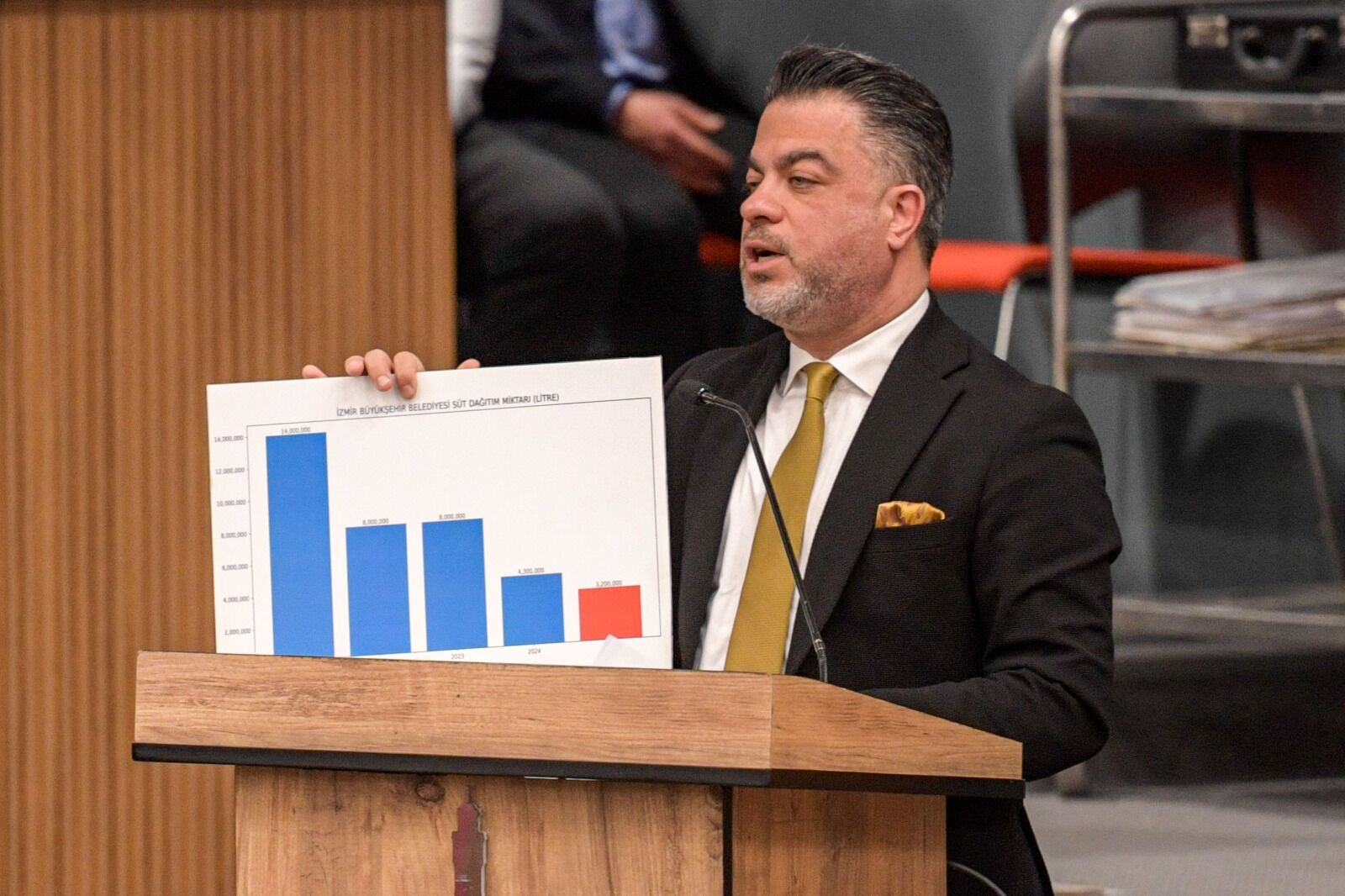Süt Kuzusu projesine yönelik açıklamalarda bulunan Nail Kocabaş, “Bu proje, Aziz Kocaoğlu döneminde başlamıştı. Doğru bir projeydi, kıymetliydi. AK Parti olarak biz de o gün ne dedik? “Doğru bir iş yapılıyor, destekliyoruz” dedik. Onu da elinizde çürüttünüz. Onu da sürdüremediniz. Onu da geriye götürdünüz! 2021’de 14 milyon litre süt dağıtılmış. 2022’de bu rakam 8 milyona düşmüş. 2023’te yine 8 milyon litre. 2024’te 4,3 milyon litreye düşmüş. 2025’te sadece 3,2 milyon litre! Burada da istikrarlı bir düşüş var! Şehrin dört bir yanına kocaman panolar asıyorsunuz: “8,2 milyon litre süt dağıttık” diyorsunuz! Başkanın görevde olduğu 2 yılın toplamı bile bu rakama ulaşmazken, siz bu hesabı nasıl yaptınız? Bu rakamı nereden çıkardınız? Bu nasıl bir matematik, bu nasıl bir ciddiyetsizlik?” dedi.
