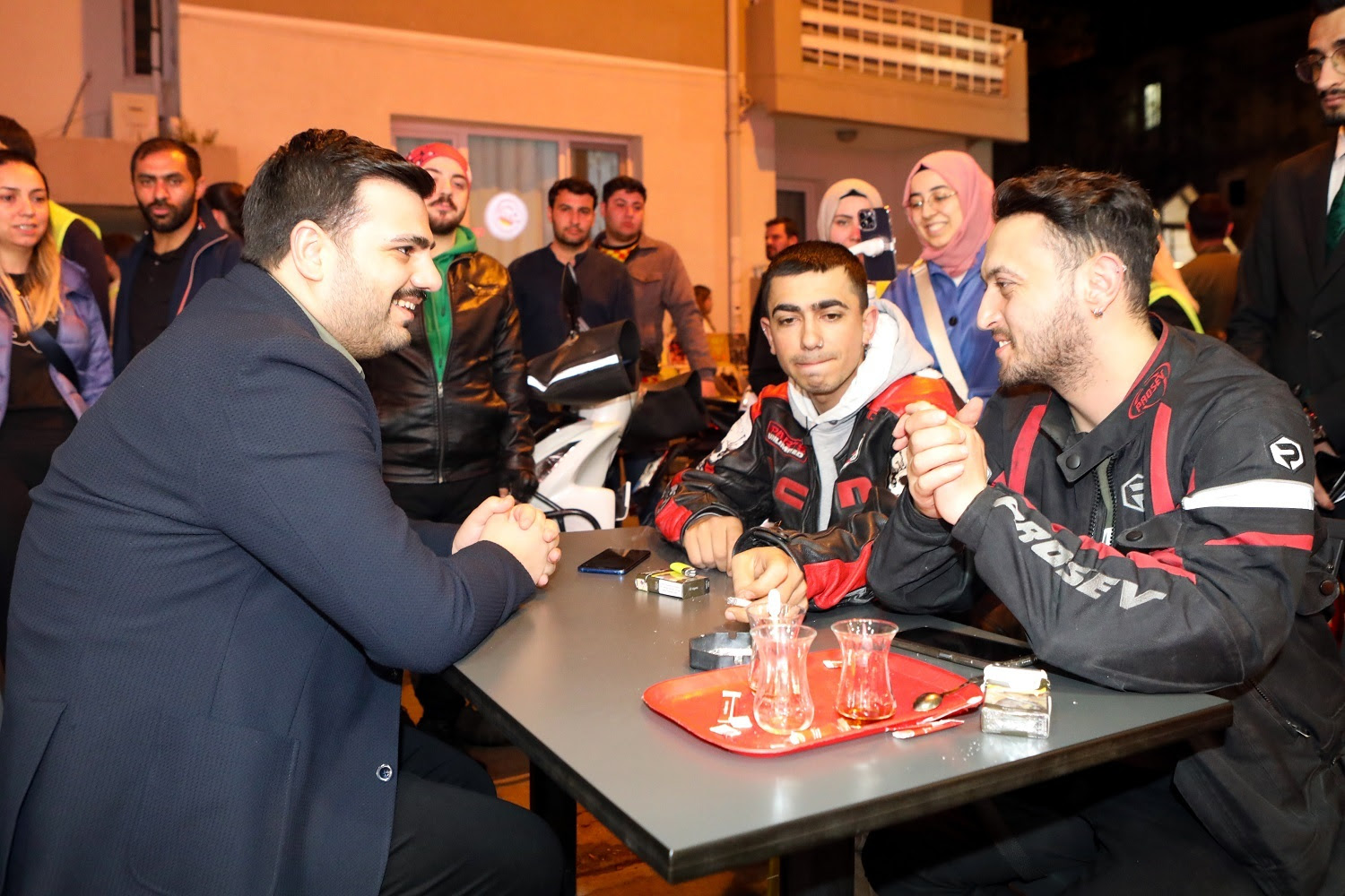 İlk olarak, daha çok üniversite öğrencilerinin bulunduğu Çiğli ilçesi Balatçık Mahallesi'ndeki gençleri ziyaret ederek sohbet eden İnan, burada yaptığı açıklamasında, AK Parti iktidarının ve Cumhurbaşkanı Recep Tayyip Erdoğan'ın her zaman gençlerin yanında olduğunun vurgusunu yaptı. Gençlik Kolları Genel Başkanı Eyyüp Kadir İnan, 'Balatçık'ta çok güçlü bir şekilde Bismillah dedik. Ak Parti son 20 yılda yapmış olduğu tüm icraatlarını her birinde kalem kalem gençlik var. Bunu şimdi anlatsam çok uzun sürer. Ama son 2 yıldır gençliğin hangi sorunu varsa biz çözdüğümüze inanıyorum. Öğrenci affından tutun bedelli affına, KYK'da gecikme faizlerinin silinmesinden KYK'lardaki internet kotasının yükseltilmesine kadar birçok alanda gençlere dokunduk, dokunmaya da devam ediyoruz. Biz gençlere kayıtsız kalan bir parti değiliz. Gençlerin gündeminde ne varsa çok hızlı bir şekilde hem parti hem hükümet politikasına çeviren bir partiyiz. Seçim beyannamemizde de kalem kalem gençlik var. Orada da Yüksek Öğrenimdeki gençlerin cep telefonu ve bilgisayar ilk satın almalarında devletimiz vergi muafiyeti sağlayacak. Yine gençlerin eğitim ihtiyaçlarından en önemlisi de bilindiği üzere internet. Hükümetimiz her ay 10 GB öğrencilerimize destek verecek. Biliyorsunuz ki AK Parti iktidara geldiğinde en büyük yük kitap yüküydü Sayın Cumhurbaşkanımız bu sorunu da fiziki anlamda çözdü. Şimdi dijital manadaki en büyük ihtiyacı çözüyor. Yine bilindiği üzere yerli ve milli olarak bir mücadelemiz var. Doğu Akdeniz'den Karadeniz'e kadar milim milim, gram gram geleceğimiz olan enerji çalışmaları devam ediyoruz. Doğalgaz aramalarımız ne için; gençlerimiz için. Oradaki devletin kazancıyla oluşturulacak Aile ve Gençlik Bankası da kuruluyor. Tabii oradaki kazanımlarımız kimler için, gençler için. Enerji aramalarımız, savunma alanındaki ataklarımızın tamamı bu memleketteki gençlerimiz için. Bu bankanın da gençlerin yanında olacak bir düzen olacağına inanıyorum. AK Parti gençlerin partisi ve Recep Tayyip Erdoğan gençlerin lideri. Biz de İzmir'de Türkiye'nin en genç milletvekilli adaylarından bir tanesi olarak çalışmaya devam edeceğiz' dedi.