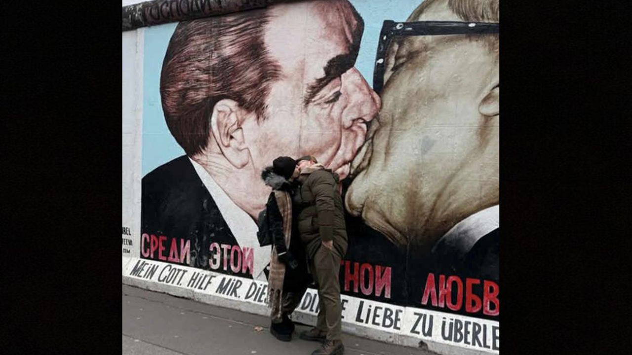EGEDESONSÖZ- AK Parti Menemen Belediyesi Meclis Üyesi Mehmet Ergüneş, Berlin Duvarı’nın yıkılmasının ardından ressam Dmitri Vrubel tarafından resmedilen ve Soğuk Savaş’ın simge görüntülerinden biri olan “Sosyalist Kardeşlik Öpücüğü”nün önünde kız arkadaşı ile dudak dudağa poz verdi. Ergüneş’in eşi tarafından yapılan paylaşım sosyal medyada tartışmalara neden oldu.