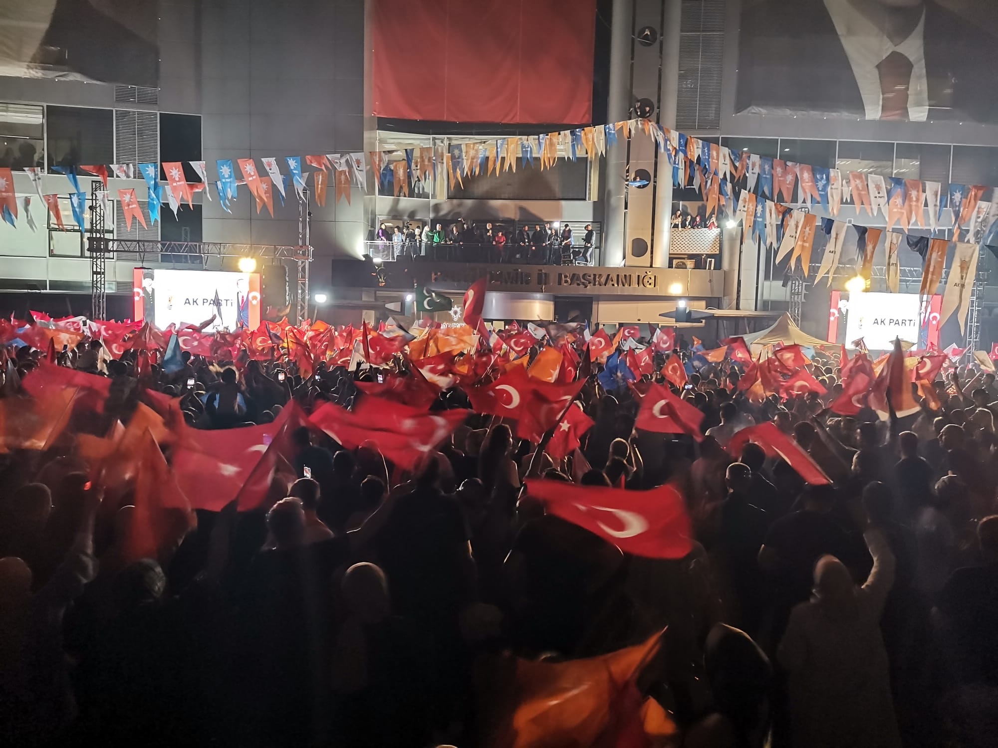 Cumhurbaşkanının zafer konuşması sonrası ise AK Parti İzmir İl Başkanı Bilal Saygılı, HÜDAPAR ve BBP İzmir İl Başkanı parti binasında bulunan balkondan kutlamaya gelen vatandaşlara seslendi.