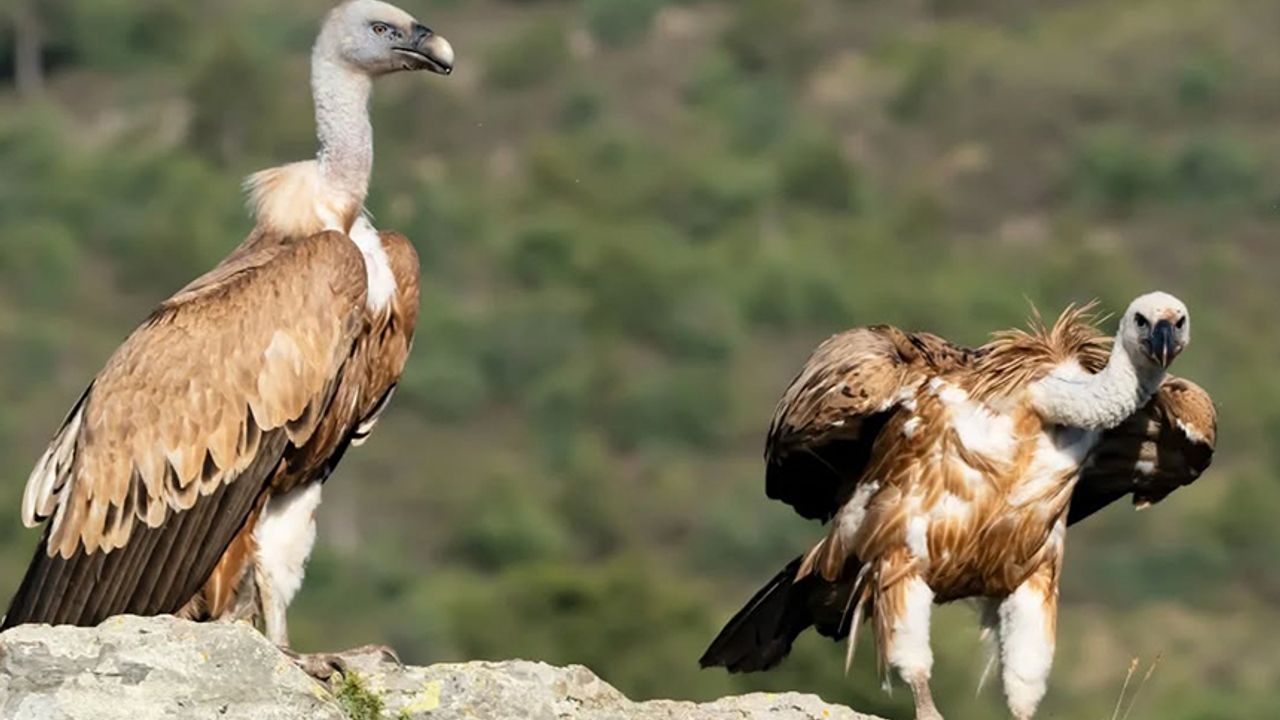 "Kayalıkların sessiz nöbetçileri" diye belirtilen paylaşımda, bir kayalık üzerine konan akbabaların hareketleri gözlemleniyor.