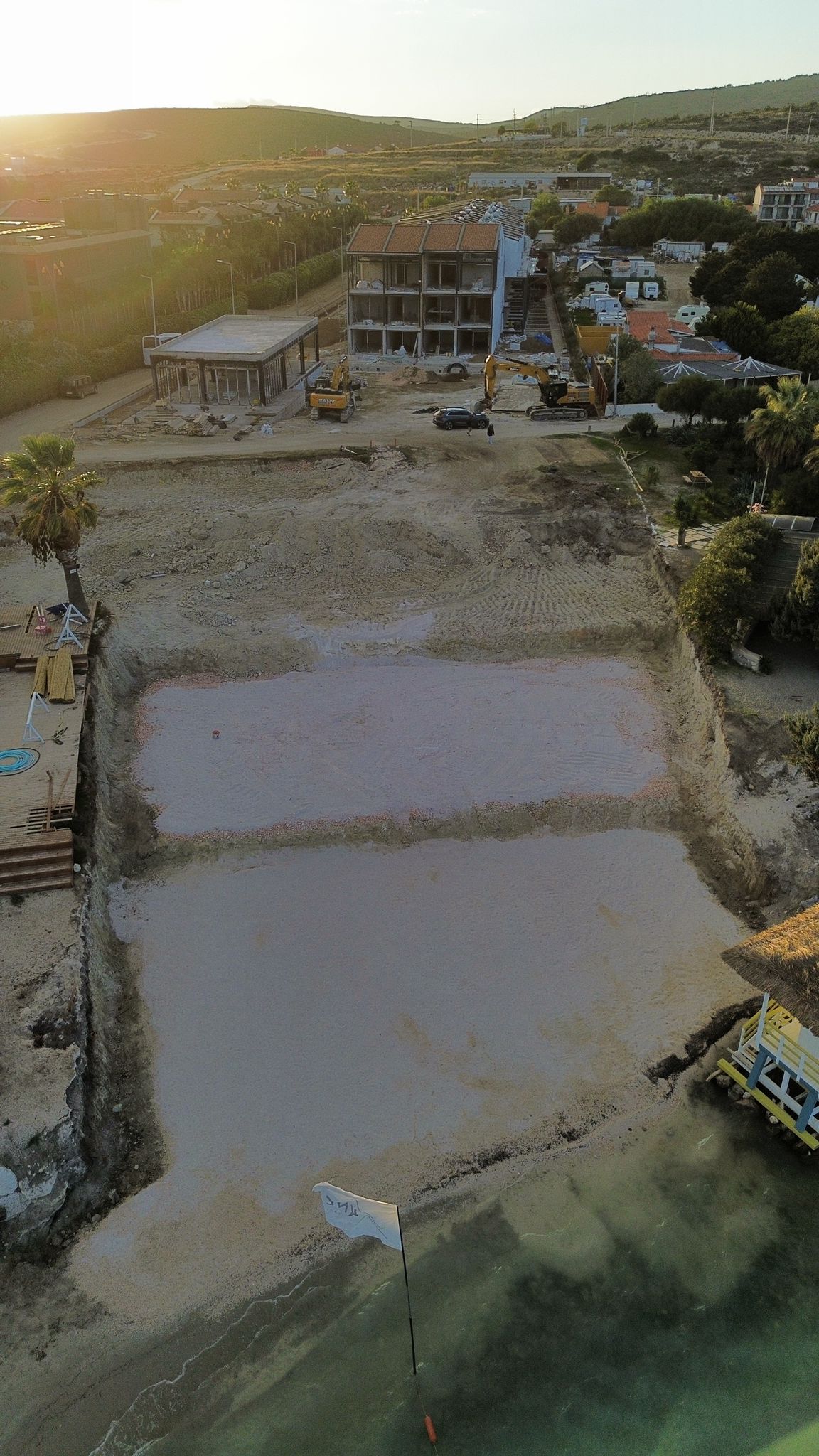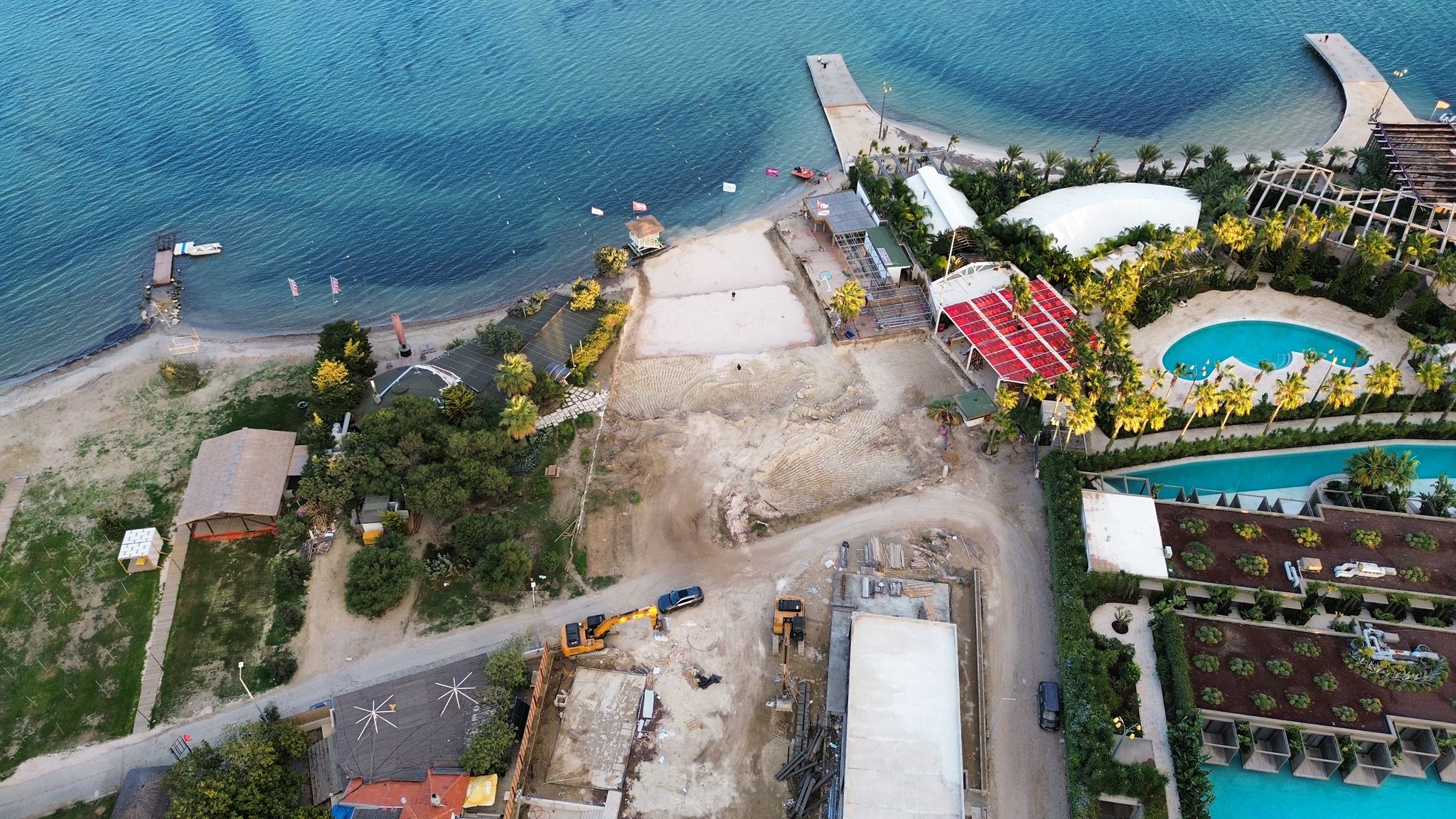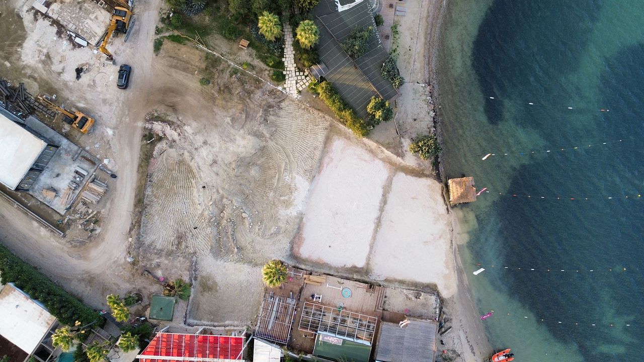 EGEDESONSÖZ - Çeşme Alaçatı’da bir işletmeye ait inşaat çalışmaları sırasında sahil şeridinin geniş bir bölümünün betonla kaplandığı ortaya çıktı. Üstelik dökülen betonun bir kısmının denize taştığı, kıyı ekosistemini tehdit eder nitelikte olduğu görüldü.