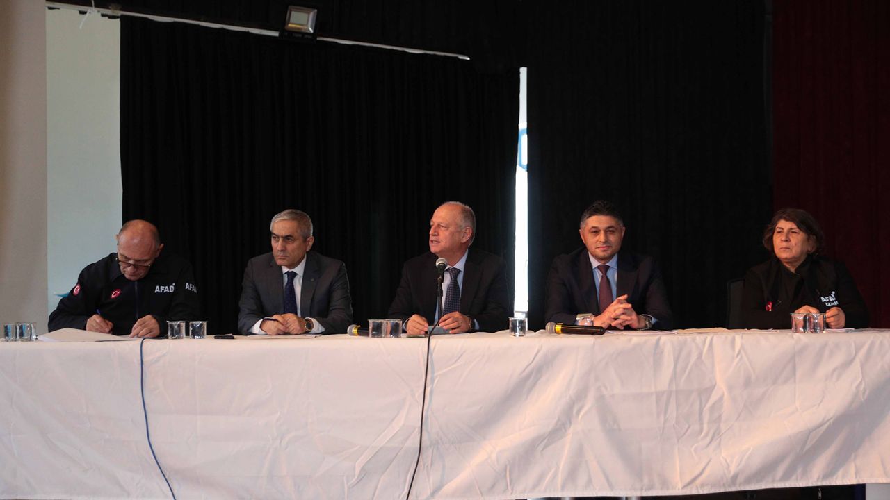 Aliağa Tüpraş Halk Eğitim Merkezi’nde gerçekleştirilen toplantıya; Vali Yardımcısı İsmail Çorumluoğlu, Aliağa Kaymakamı Zekeriya Güney, Aliağa Belediye Başkanı Serkan Acar, AFAD İl Müdürü Nazif Ekinci, AFAD Planlama ve Risk Azaltma Şube Müdürü Sezgin Kazaz, daire amirleri, muhtarlar, afet çalışma grupları ile ana çözüm ortaklarının yetkilileri katıldı.