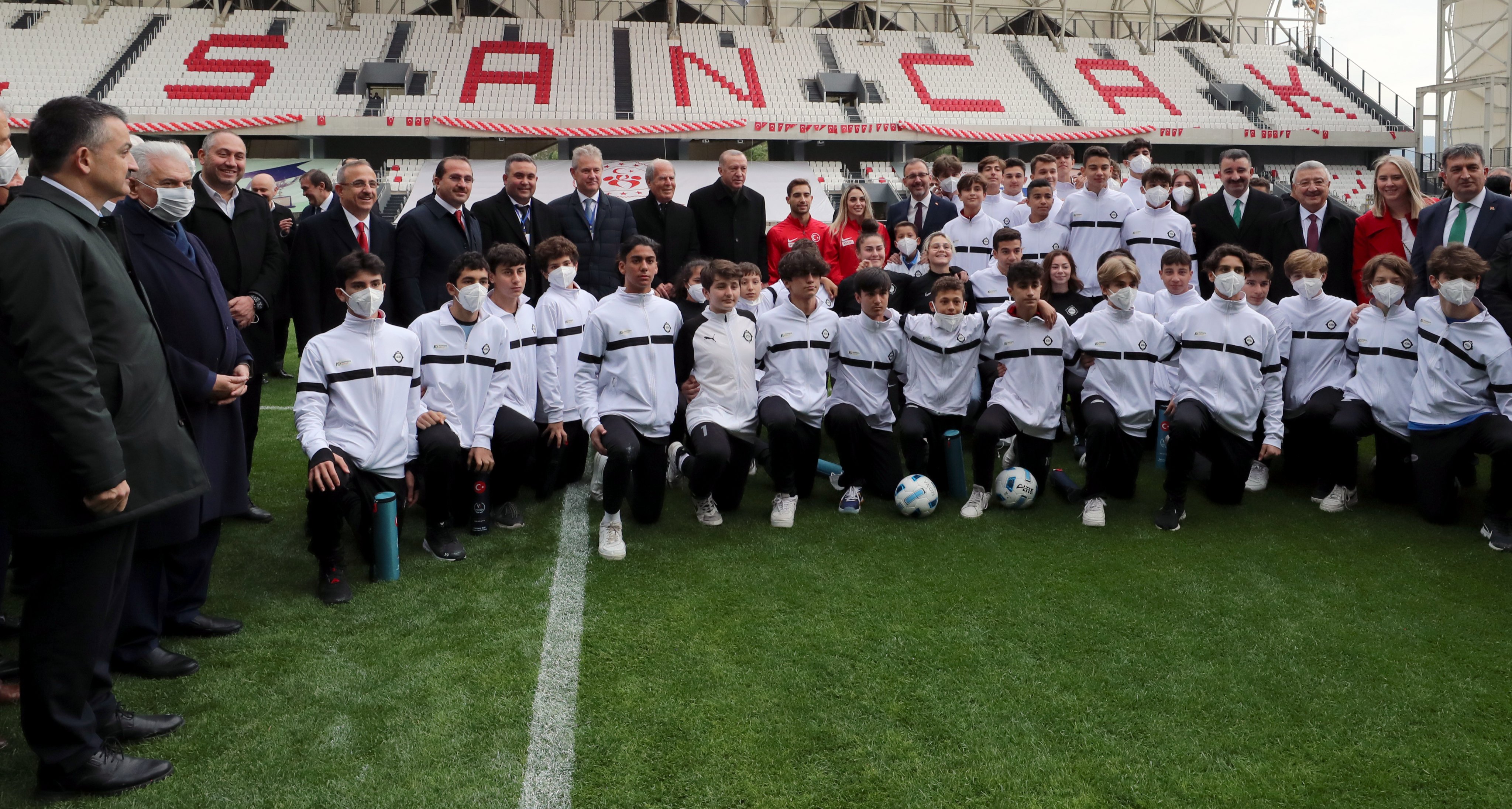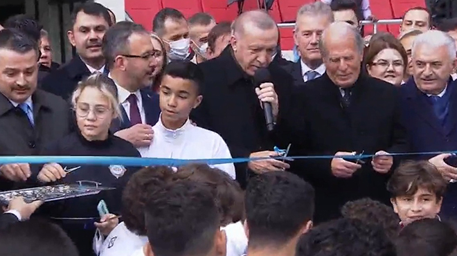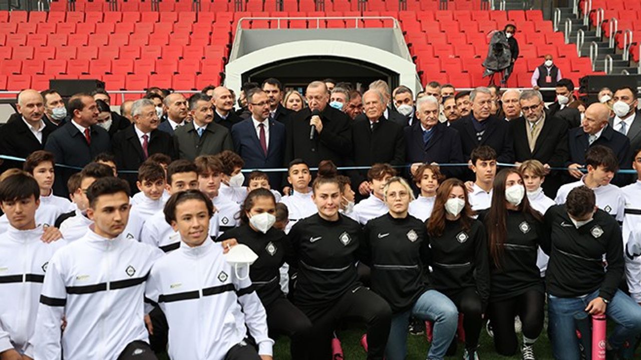 Altay'ın altyapı ve kadın futbol takımı oyuncularıyla milli jimnastikçiler İbrahim Çolak ve Göksu Üçtaş Şanlı'yı da kurdele kesimine davet eden Cumhurbaşkanı Erdoğan, buradaki konuşmasında Alsancak Mustafa Denizli Stadı'nın açılışını yaptıklarını belirterek, şunları kaydetti:
