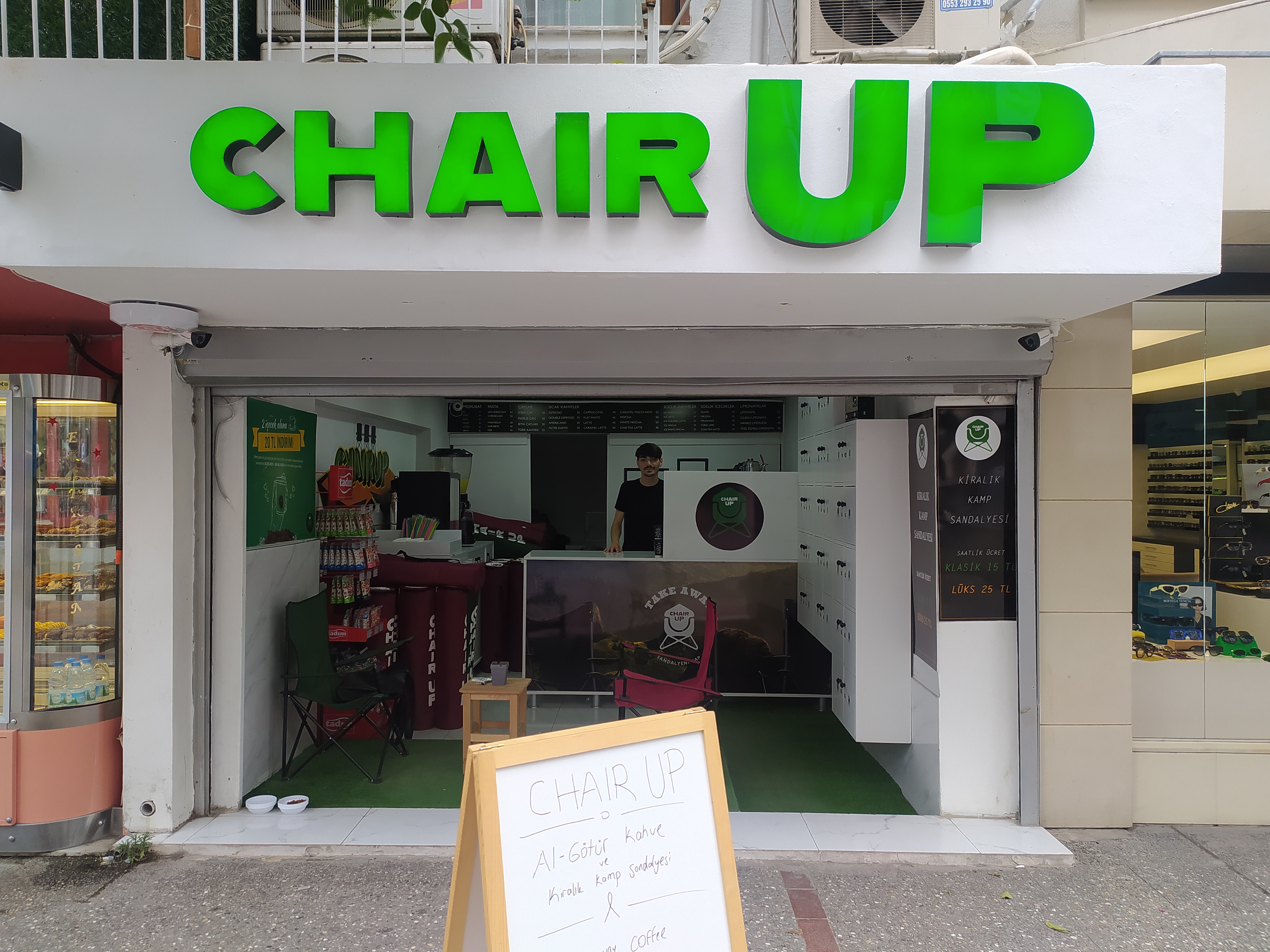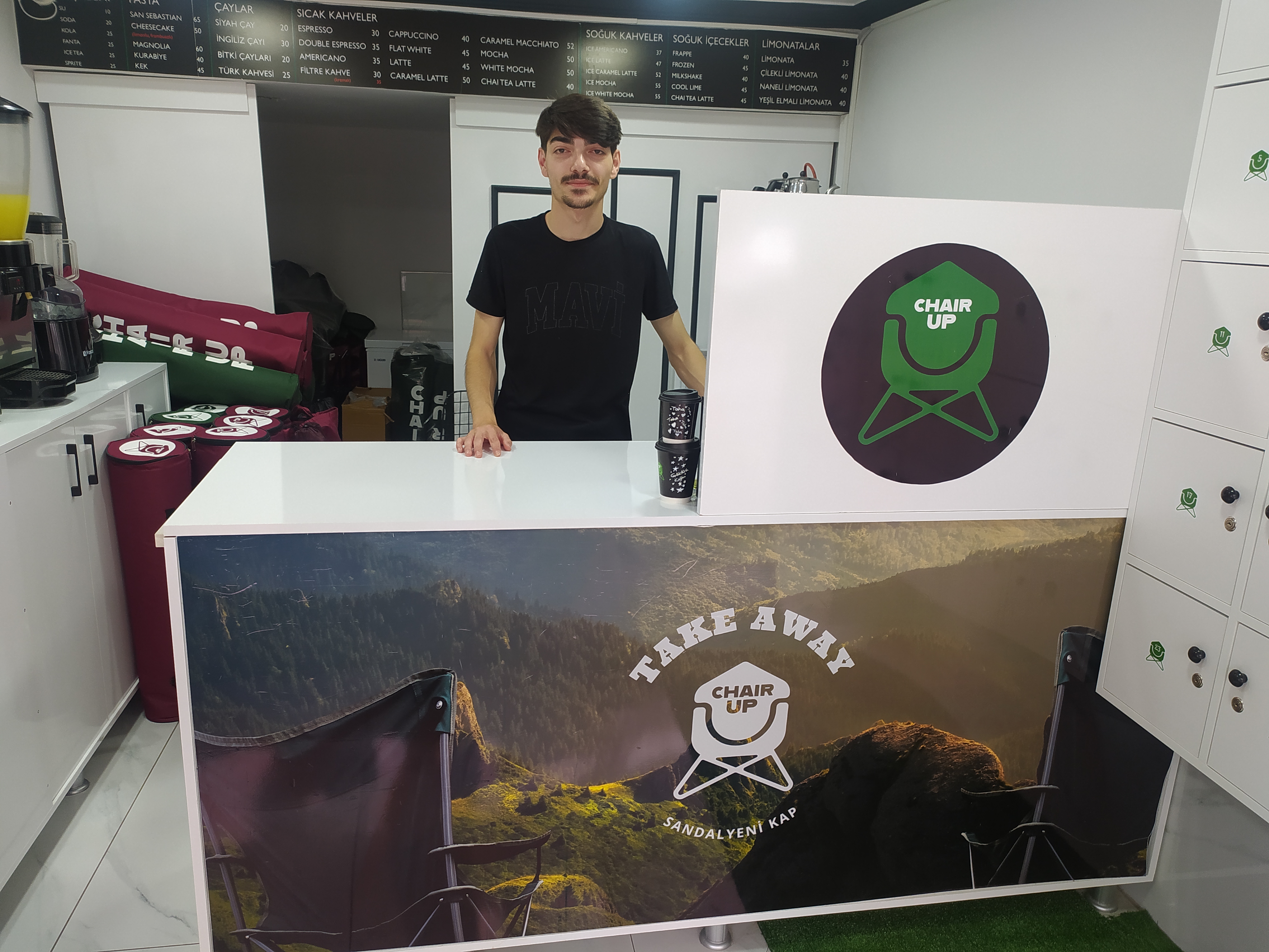 Diren ÇELİK/EGEDESONSÖZ- Alsancak semtinde farklı bir konseptle hizmete giren Chair Up, iki genç üniversite öğrencisinin girişimiyle kuruldu. 1 Nisan'dan itibaren hizmete açılan kafede kamp sandalyesi kiralayanlara kahve indirimli olarak satılmaya başlandı. Lüks ve klasik olarak iki çeşit sandalye türü olan kafede, müşteriler, sandalyalerini alıp soluğu Kordon'da alıyor.