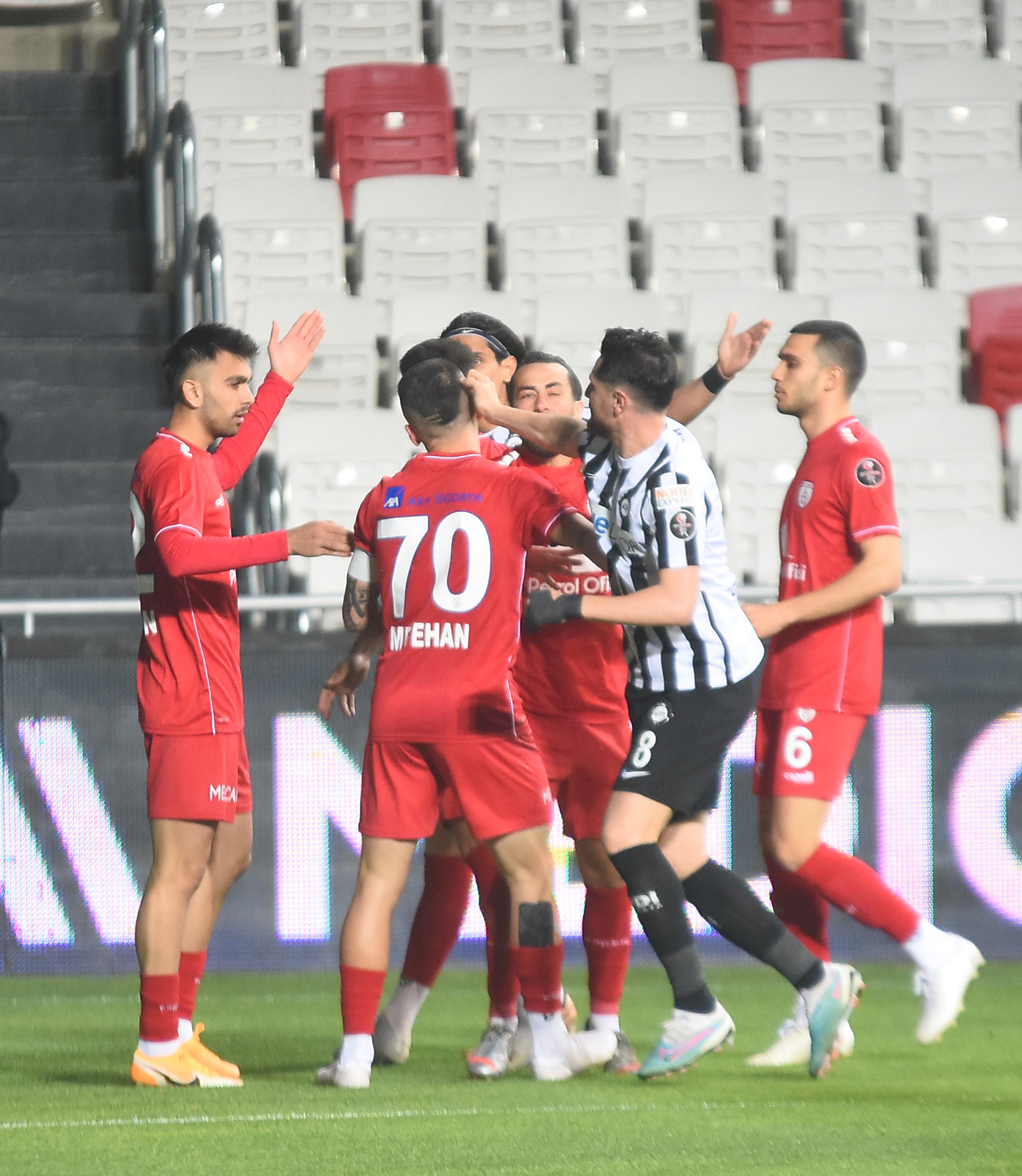 Golün ardından sevinç yaşayan Altınordu futbolcular ile Altaylı oyuncular arasında gerginlik yaşandı.