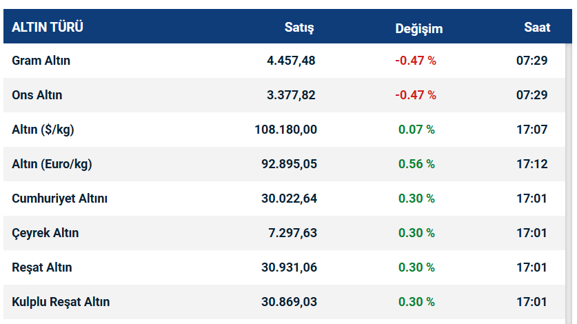 Gram altın güne 4477 liradan başladı. Gün içinde en düşük 4460 lira, en yüksek de 4479 lira seviyesi görüldü. Şu sıralar 4460 liradan alıcı buluyor.