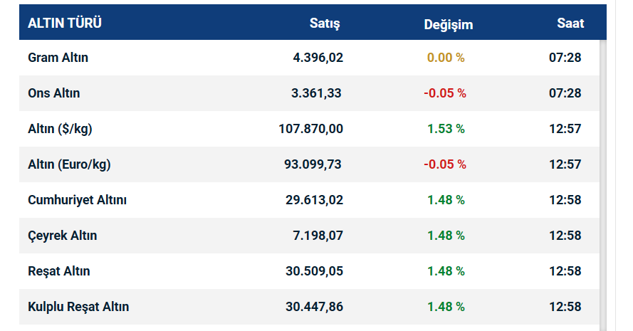 Gram altın güne 4396 liradan başladı. Gün içinde en düşük 4374 lira, en yüksek de 4402 lira seviyesi görüldü. Şu sıralar 4395 liradan alıcı buluyor.