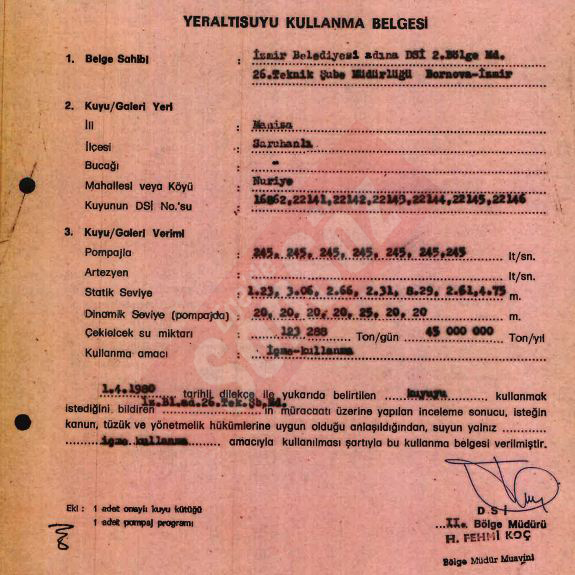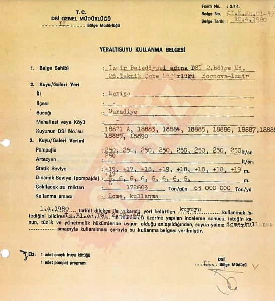 Dönemin DSİ müdürlerinin imzaladığı, 1980 yılında yapılan protokollere göre, Muradiye’de ve Nuriye’de bulunan Göksu ve Sarıkız su kuyularından içme suyu kullanımı için su çekilmesi konusunda anlaşmanın yapıldığı ve anlaşmanın Yenişehirlioğlu’nun söyleminin aksine süreli olmadığı görüldü.