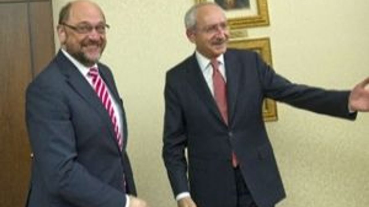 CHP Genel Başkanı Kemal Kılıçdaroğlu, sosyal demokrat kökenli Avrupa Parlamentosu Başkanı Martin Schulz ile dün iki kez görüştü. İlk görüşme TBMM'de ikinci görüşme ise Genel Merkez'de yapıldı.. Görüşmeye CHP adına Genel Başkan Yardımcısı Murat Özçelik, Bursa Milletvekili Aykan Erdemir ve Ankara Milletvekili Aylin Nazlıaka da katıldı.