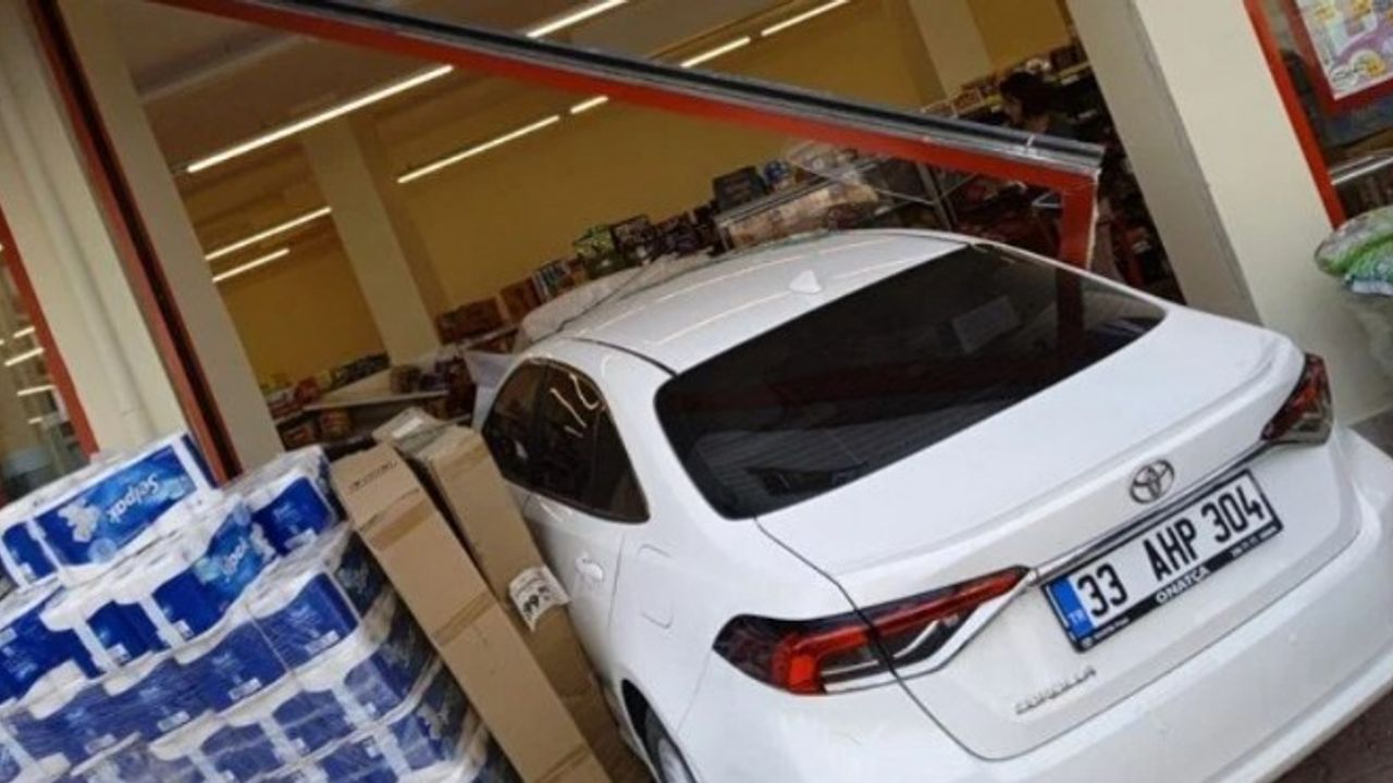 Mersin'in Tarsus ilçesinde sürücüsünün kontrolünü yitirdiği otomobil markete girdi.