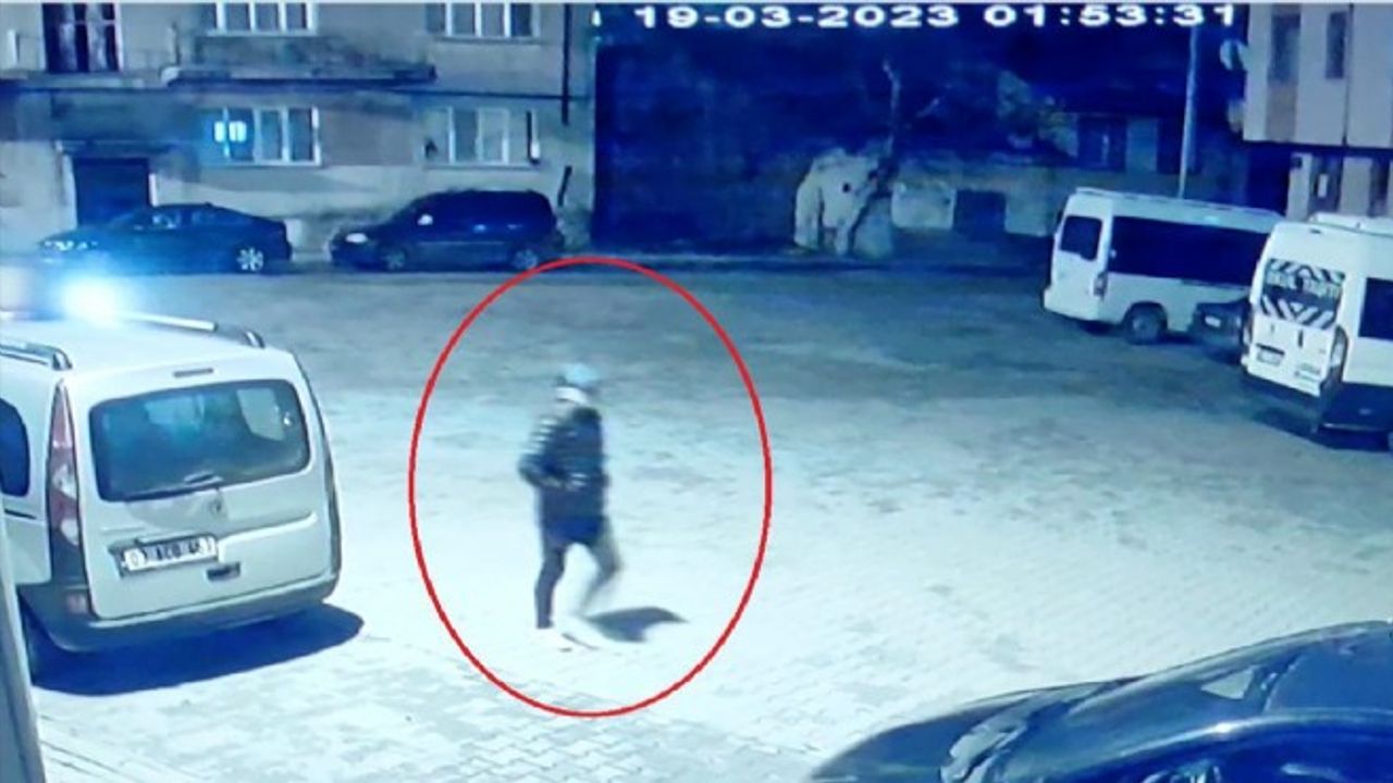 Şüphelinin bazı araçların lastiğini kestiği anlar da kameralarca kaydedildi.
