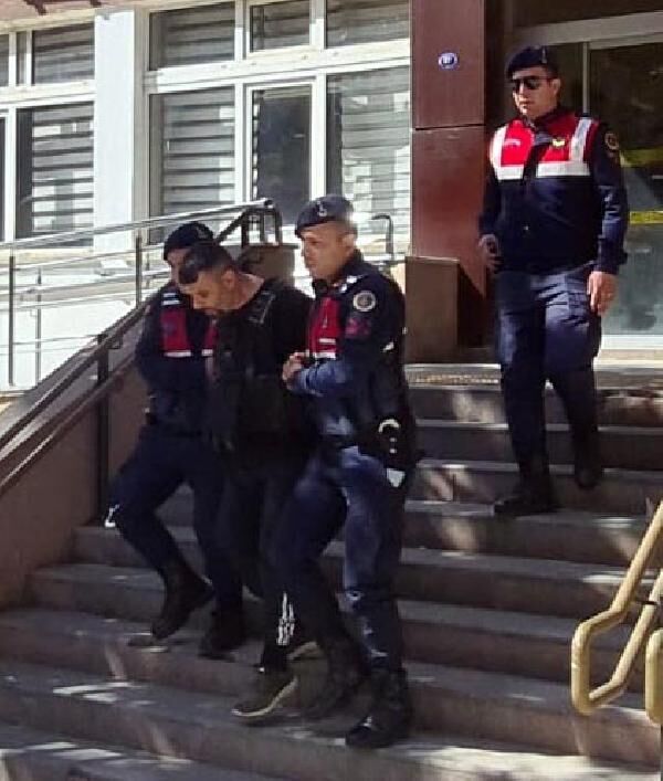 İzmir'in Kemalpaşa ilçesinde, alacak verecek meselesi nedeniyle arkadaşları Ahmet Çetin ve Kemal Sönmez'i tabancayla vurarak öldürdüğü ve Feyyaz Bulut'u da kolundan yaraladığı gerekçesiyle gözaltına alınan C.U., sevk edildiği mahkemece tutuklanarak cezaevine gönderildi. (DHA)