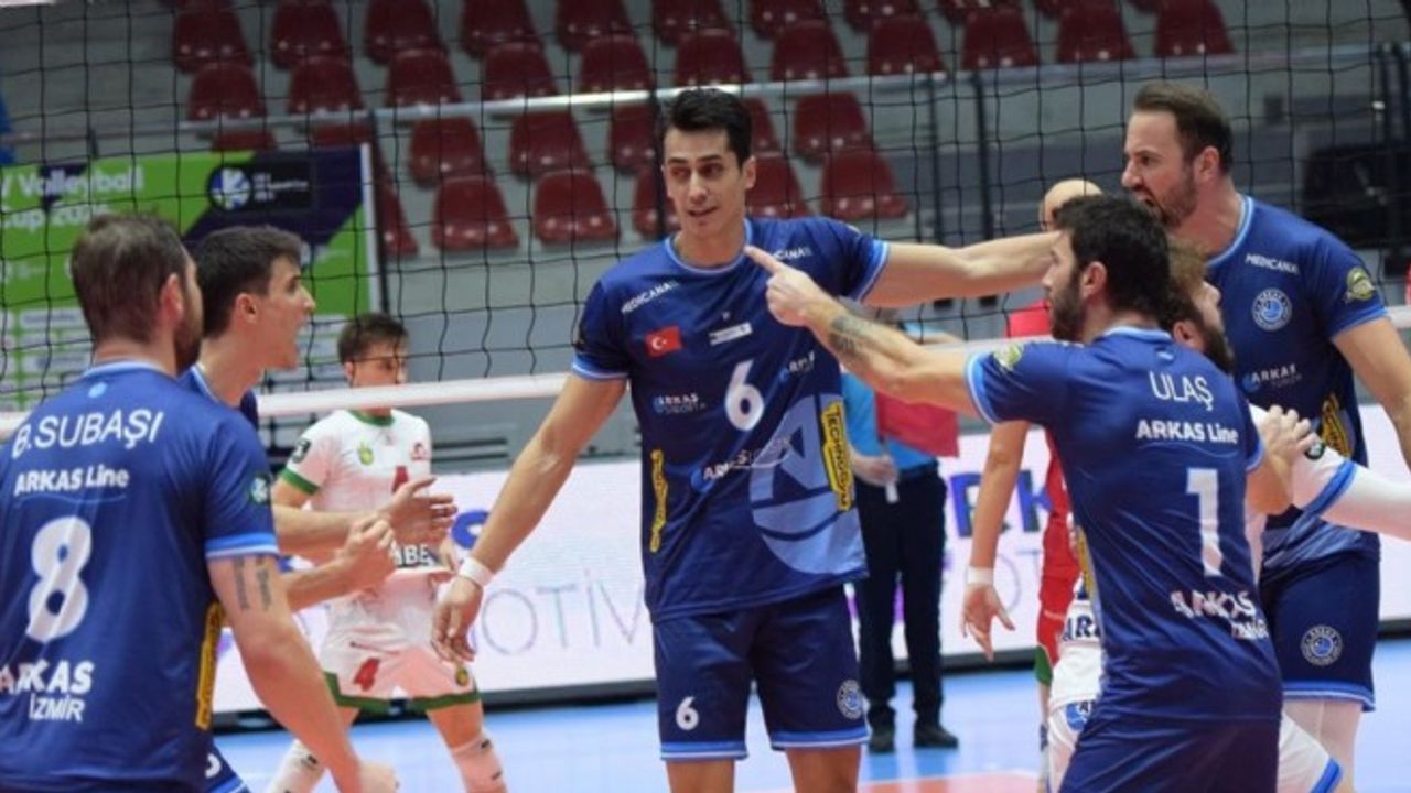 İzmir Atatürk Voleybol Salonu'nda oynanan müsabakanın setleri 25-22, 25-17 ve 25-15'lik skorlarla sona erdi. Galibiyeti seyircisiyle kutlayan Arkas Spor, 8'li Finaller Turu'nda Çekya temsilcisi CEZ Karlovarsko ile eşleşti. (DHA)